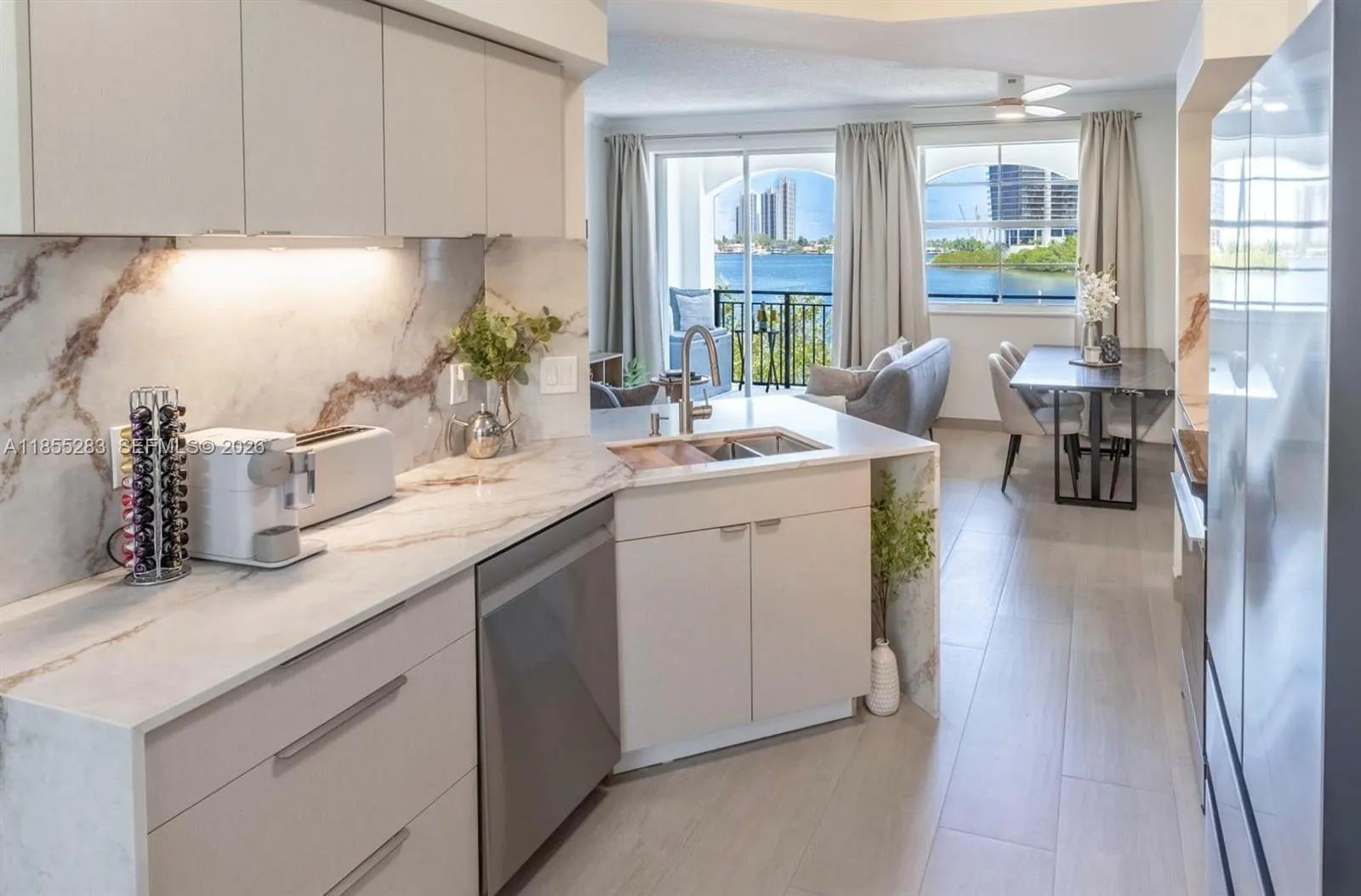 Welcome to this gorgeous peaceful bayfront home with breathtaking views from every room!rnThis newly renovated 2 bdrm 2 bath condo features two balconies to enjoy morning coffee as the sun rises over the water or unwind with a glass of wine while watching the sunset cast its golden hues across the bay. The large modern kitchen is fully equipped for your culinary adventures including induction range, dual flex fridge & Nespresso & Keurig machines catering to all coffee lovers. Gated community amenities include 2 sparkling swimming pools, charming clubhouse with water views, well-equipped fitness center & a peaceful yoga studio, 2 tennis courts, a spacious BBQ area. Perfect location with great restaurants, shops, schools, Aventura Mall and turquoise colored stunning beaches nearby. AVAILABILITY: STARTING JULY 23RD 2026. Price for 6+ months rental $5,500/m , – 4-6 months $6,000/m, 3 months or less $6,500/m
