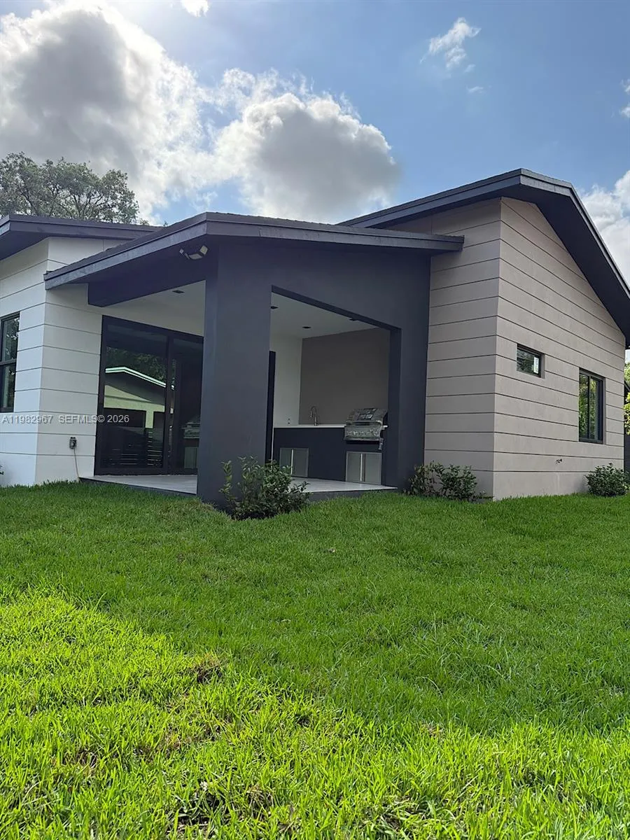 Dream home! BRAND-NEW CONSTRUCTION!! Spacious and bright single-story home on a corner lot with beautiful landscaping, offering a perfect blend of modern design, comfort, and functionality. This exceptional residence features 4 bedrooms, each with a private bath, 1 additional full bathroom, soaring 9-foot ceilings, and 8-foot doors throughout, creating a bright and elegant feel. The home also includes a beautifully designed summer kitchen, new appliances, ceramic flooring, modern custom built-in cabinetry, impact windows, and full air conditioning. The laundry room is conveniently located near the kitchen for added practicality. Completing the property is a covered 2-car garage and an oversized driveway with space for up to 6 vehicles. Stylish and move-in ready, this newly built home is a standout opportunity.