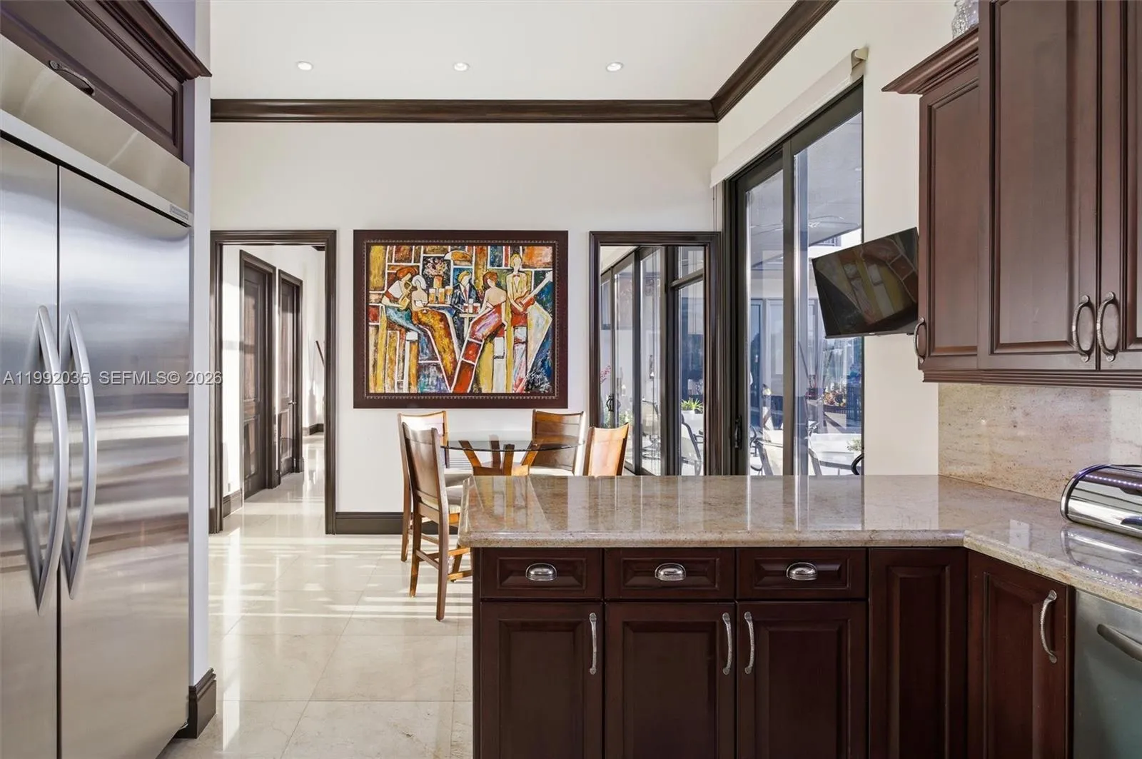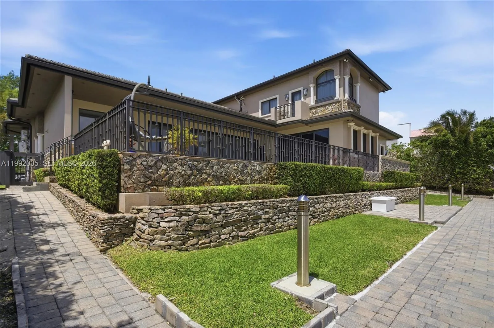 GORGEOUS GATED WATERFRONT ESTATE in Gables By The Sea. This stunning 2 story 4 Bed / 4.5 Bath home offers the ultimate luxury lifestyle with no bridges to the bay a true boater’s paradise. Featuring a 100’ reconstructed seawall, 9’ draft and direct ocean access, this property is built for waterfront living.rnStep inside to soaring 12’ ceilings and a breathtaking 14’ ceiling in the grand room, elegant 24” marble floors, a grand staircase, and exquisite Brazilian wood doors. Enjoy impact windows and expansive 10’ sliding glass doors that flood the home with natural light.rnThe gourmet kitchen features premium appliances, granite counters and custom cabinetry, perfect for entertaining. Elevate your lifestyle with a private club room featuring a full bar, private bathroom and VIP entertainment space overlooking the pool and dock, a true showpiece.rnStep outside to your private oasis with a saltwater system pool, summer kitchen and expansive deck. The luxurious primary suite offers a sitting area, spa style bath, walk in closets, private office and terrace.rnAdditional highlights include pool bath, media room, 4 A/C zones, 2 central vacuums, 2 car A/C garage and full exterior lighting & camera system. Owner built with no expense spared crafted for comfort, quality and lifestyle.