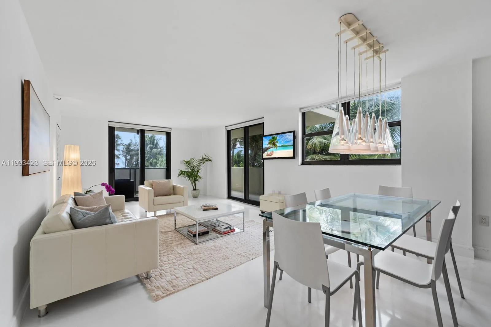 Direct oceanfront living with stunning ocean and pool views from this 2BD/2BA residence. Beautifully refreshed with a neutral coastal palette, creating an open, airy space that feels effortlessly calm and serene. The open-concept layout is filled with natural light and offers comfortable living and entertaining space. The primary suite features an oversized walk-in closet and ensuite bath with double sink vanity and bidet. In-unit washer/dryer connections and covered, assigned parking add everyday convenience. Enjoy full-service beachfront living with dedicated beach service, along with pool and fitness center. Ideally located next to the Loews Hotel and just steps away from world class dining, shopping and entertainment.