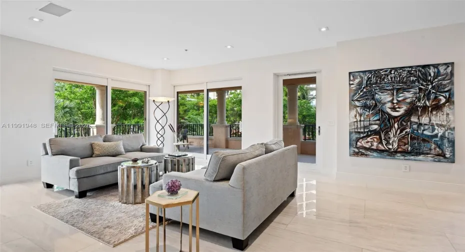 Beautiful, spacious and totally remodeled apartment with 3 bedrooms plus den and 3 1/2 bathrooms. Lagoon and garden views. 2 car garage, 1 golf cart parking space and storage space.