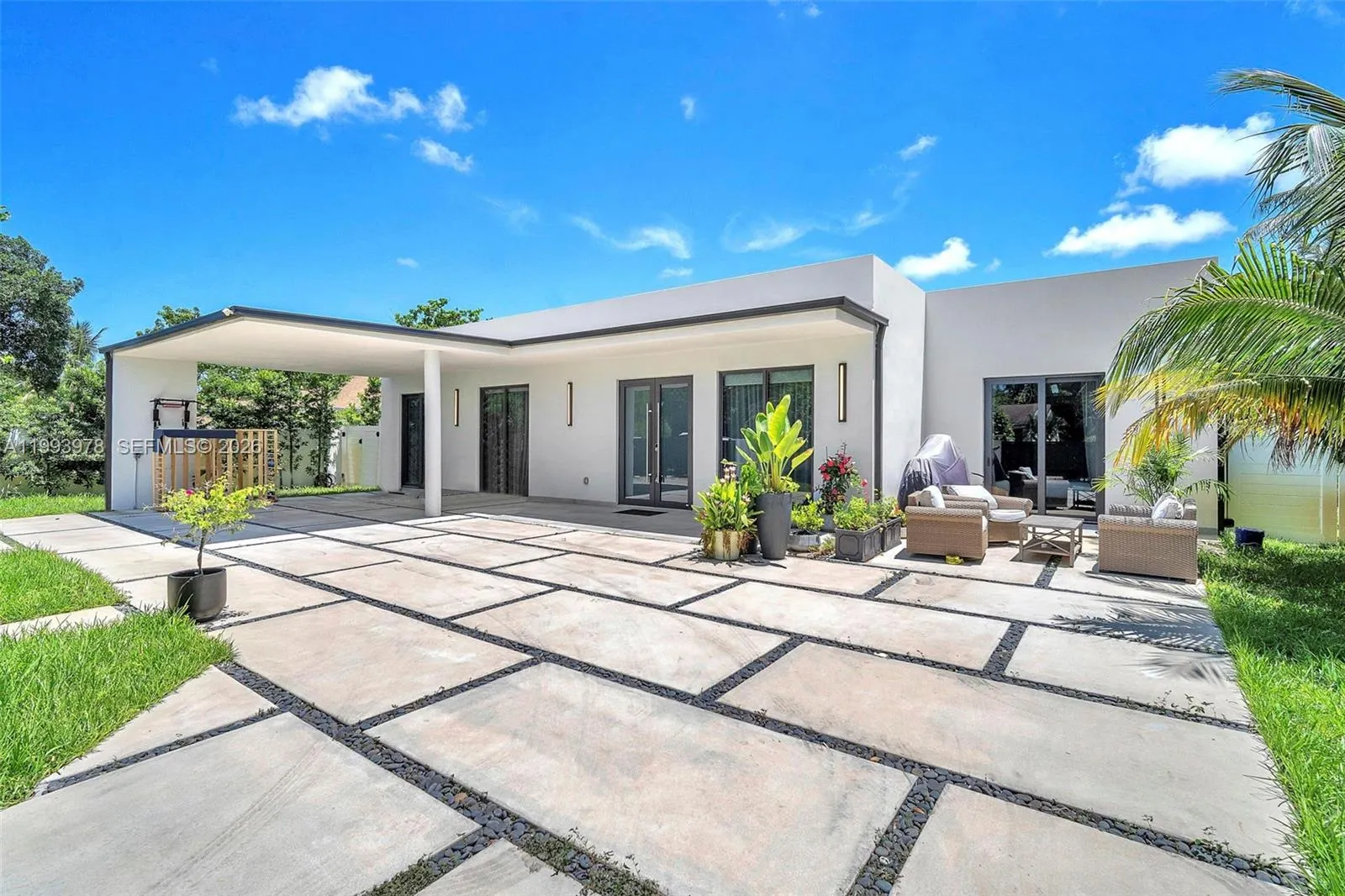 Stunning residence built in 2023 in the desirable North Miami area, located in Biscayne Gardens. Beautifully designed and styled, this modern home showcases high-end finishes with premium materials, including marble and wood accents throughout. The thoughtfully curated layout flows seamlessly to a private backyard oasis with a resort-style pool—ideal for refined family living and effortless entertaining. Airbnb-friendly with proven income potential, this turnkey property may be offered furnished, presenting an exceptional opportunity for both end-users and investors in a centrally located Miami neighborhood.