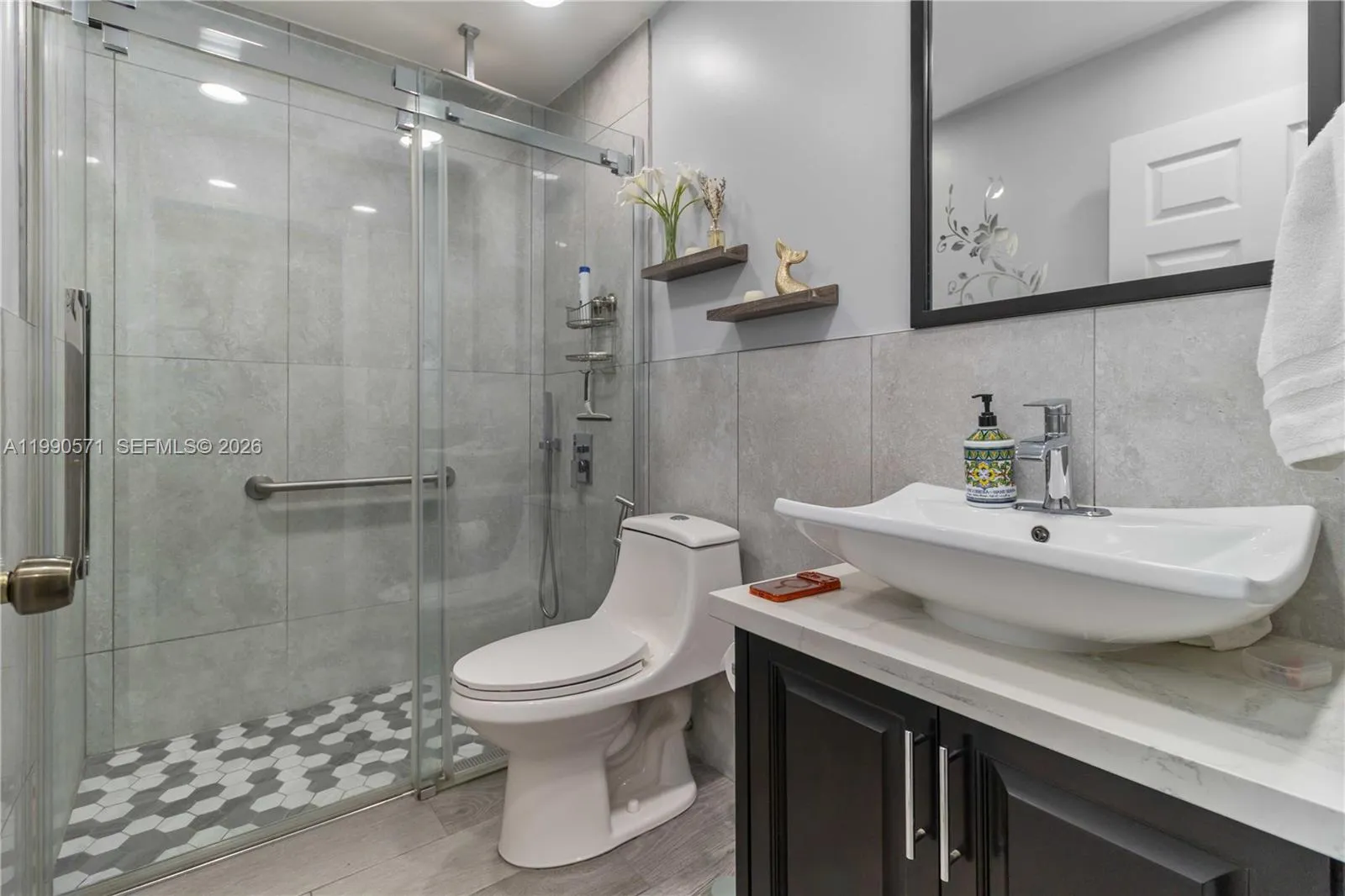 WELCOME HOME! This beautifully maintained single-family residence is located in a welcoming, family-oriented neighborhood with NO HOA. This West Kendall gem features double-door impacted doors, with some other windows impacted as well, giving a bright and open floor plan, with elegant porcelain flooring and desirable east-facing exposure that fills the home with natural light throughout the day. A professionally converted garage provides a versatile space—ideal for a home office, gym, or guest suite. The kitchen is fully equipped with essential appliances and showcases a modern design with a central island, seamlessly connecting to the spacious family room—perfect for entertaining. Step outside to enjoy a large covered terrace overlooking a lush, beautifully maintained garden. Additional highlights include city gas service powering the dryer, water heater, and brand-new stove—helping improve energy efficiency and reduce utility costs. The A/C compressor is only one year old, ensuring comfort during the warmer months. The home also features a fully finished attic for convenient storage, along with a new roof and updated electrical panels for peace of mind. All closets have been thoughtfully finished with both style and functionality in mind, as well as the baseboards and modern trims throughout the house, is easy to show with a 24-hour notice. Don’t miss the opportunity to make it yours! Some of the pictures are AI Stages to showcase the property’s true nature.
