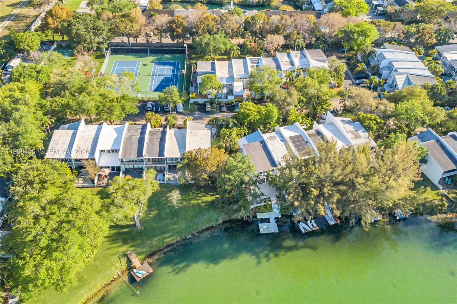 Welcome to this beautifully renovated, private townhouse in the highly sought-after gated community of Lake Ridge in Miami. Nestled within a lush, natural setting, this exceptional residence offers the perfect blend of tranquility and convenience.rnrnThe home features a stunning white kitchen with new appliances, complemented by elegant porcelain floors throughout. A spacious living room opens seamlessly to a private, tree-lined patio with lush landscaping—ideal for indoor-outdoor living and entertaining. The ground floor also includes a generously sized bedroom and full bath, perfect for guests or flexible use.rnrnUpstairs, the expansive primary suite impresses with vaulted ceilings, a large walk-in closet, and a beautifully appointed bathroom featuring a generous walk-in shower. An additional upstairs bedroom offers its own ensuite bath, ample closet space, and a spacious layout.rnrnLake Ridge is known for its serene, nature-filled environment, complete with a clean, usable lake, kayaking, tennis, and a waterfront pool. Enjoy peaceful strolls along the water while being just minutes from Coral Gables, the University of Miami, and a wide array of shopping, dining, and entertainment.rnrnA rare opportunity to enjoy refined living in one of Miami’s most desirable communities.