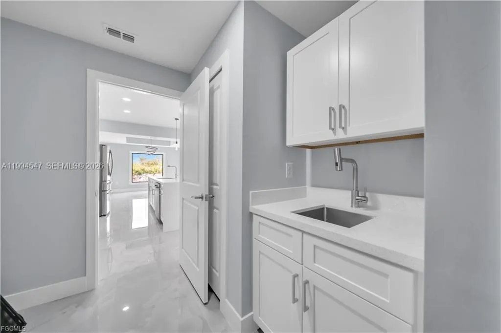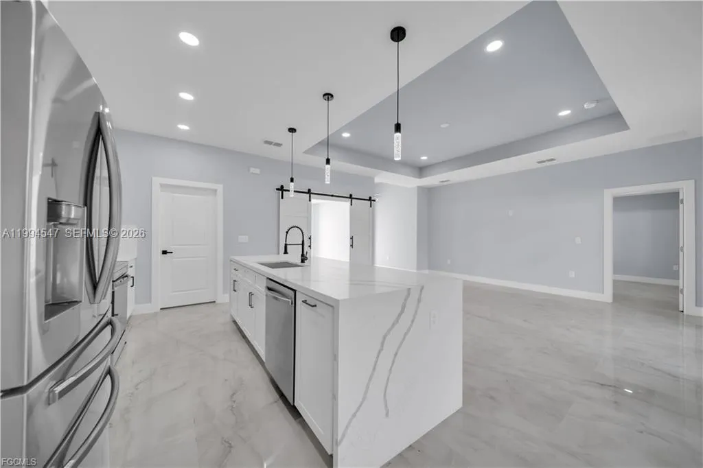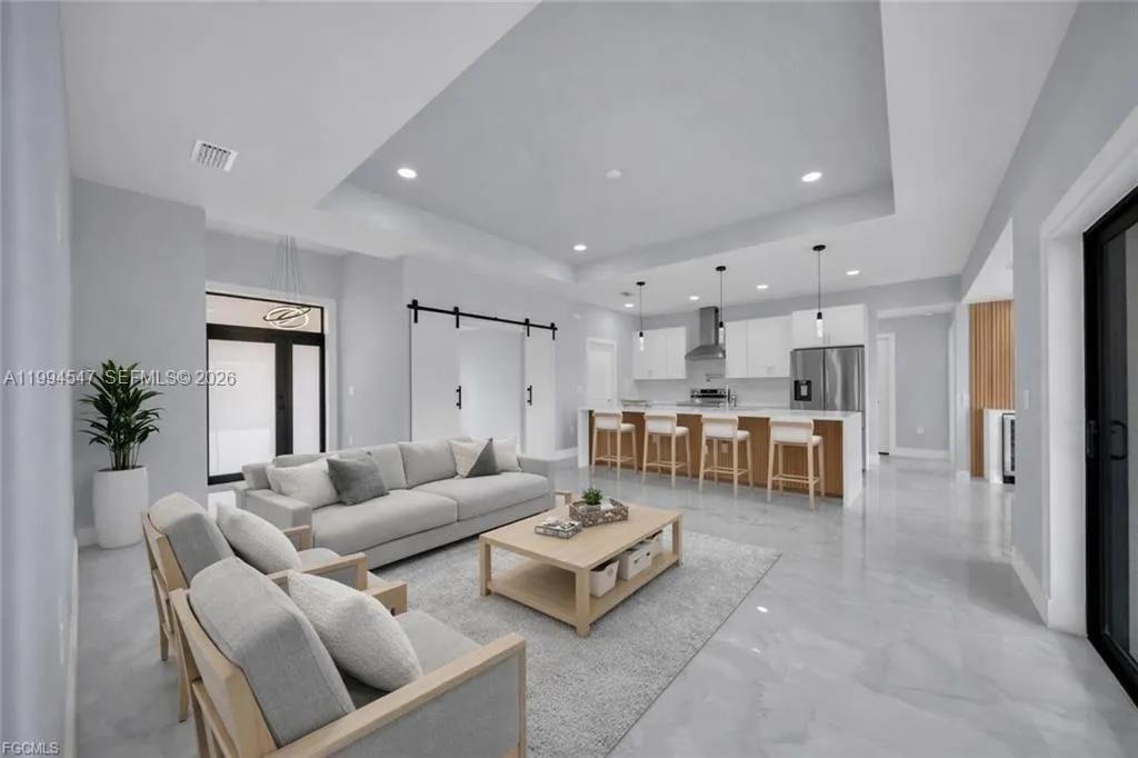 Your Dream Home in Lehigh Acres Awaits!!!!!!!!!! Discover this stunning 2 bath 3 bedroom plus Den Office property that perfectly blends comfort, elegance, and functionality—ideal for families seeking a modern and secure lifestyle. Key Features: Impact-resistant windows and doors for peace of mind Porcelain tile flooring throughout the home for a sleek, low maintenance required. Kitchen and bathrooms with quartz countertops and stainless-steel appliances, Wood cabinets, double vanities in the master bathroom, custom shower and walk-in closet. Tray ceilings adding style and spaciousness. Extended patio and sidewalk surrounding the entire property, connecting to the driveway—perfect for outdoor. Doble car Garage with extra Side exit door for convenience. Dining room with extra Counter-Top and wine cooler, ideal for entertaining family and friends. This house come with an Oversize Lanai and summer kitchen already added, perfect for outdoor activities. This corner lot offered a prime location in Lehigh Acres. close to schools, parks, and shopping. This property is more than just a house—it’s a lifestyle waiting for you. Schedule your visit today. CALL FOR YOU PRIVATE SHOWING!!!!!!!!!