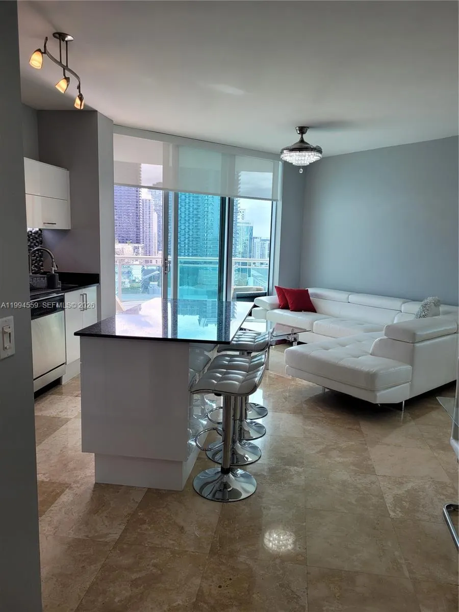 Rare opportunity to own a truly unique residence at Wind Brickell, a unit that stands apart from all others in the building. This home has been substantially and tastefully remodeled with high-end finishes, including a complete kitchen transformation with glossy white cabinetry, new hardware, sinks, mirrors, smart lock, and the addition of a kitchen island for enhanced functionality and space. Modern LED lighting, a custom-made closet with barn door, and refined contemporary details elevate the entire residence. This beautifully furnished 2-bedroom, 2-bathroom home offers breathtaking city and water views of Brickell and the Miami River through elegant glass doors, complemented by a wrap-around balcony ideal for relaxing and entertaining. The layout, finishes, and design make this apartment truly unlike any other unit in the building. Residents enjoy state-of-the-art amenities, including a resort-style pool, jacuzzi, fully equipped gym, racquetball court, movie theater, arts room, and more. Gated community with 24/7 security and attended lobby. Unbeatable location in the heart of Brickell/Downtown—walking distance to the free Metromover, Brickell City Centre, Bayside, Miami Riverwalk, Mary Brickell Village, and top restaurants, bars, and entertainment. An exceptional opportunity for end users or investors seeking a turn-key luxury residence. Furniture negotiable. Investors, hurry, wont last