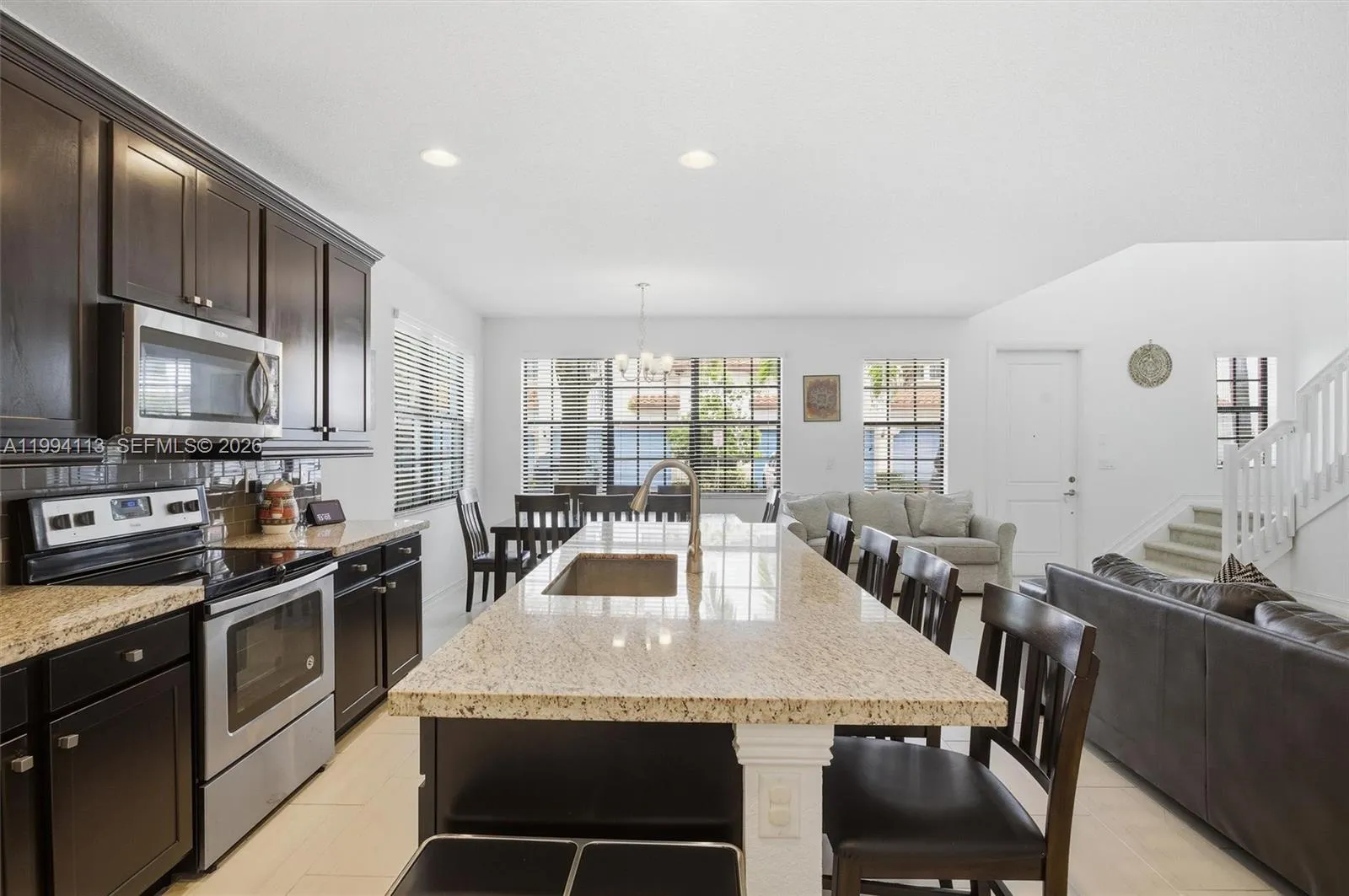 A modern, beautifully maintained townhome in the gated, nicely landscaped community of Raintree at Mayfair. This two floor home boasts 3 bedrooms all with ensuite bathrooms + a powder room. A corner unit, it has extra windows allowing for ample natural light. Downstairs is nicely tiled and is built with a large open concept great room to accommodate living and dining comfortably. The kitchen has stainless steel Whirlpool appliances, a large center aisle, dark wood cabinets and mottled solid granite counters that are found throughout the home. Your master has dual closets and a private, palm shaded balcony. It’s completed with separate tub, glass enclosed shower & double basins. Upstairs accommodates a convenient laundry room with washer & dryer & cozy mezzanine you can adapt to your needs. Your garage has 2 car spaces with extra room for storage or even a motorcycle. This lovely community has a gym, heated pool and a room with full kitchen for meetings or parties. Beyond that, it is great for taking a stroll, walking your dog or anything else you choose. A kids play area is being installed later this year. At Raintree, you are close to the I75, plenty of shops, restaurants and many other services. This is a wonderful location in Pembroke Pines.