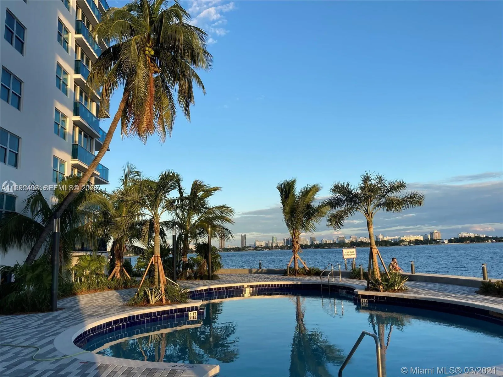 You need peaceful quiet living? You have found it here. Absolutely terrific sun-drenched South facing 1/1 right on Biscayne Bay with a gorgeous view from Biscayne Bay to the east and west. Super quiet location with NO noise from 79 Street to the North. Enjoy basking in the sun on your patio from the moment you awake in the morning til mid afternoon. You will enjoy BOTH sunrises and sunsets from your spacious patio. Enjoy cool breezes year round as our building is on the southeastern corner of Treasure Island. Hurricane windows and engineered wood floors throughout the apt. Located right up the street from a brand new Publix being built, and the exciting Argentinian Football Association center, and across the street from A rated Treasures Elementary School. Building is in the final stages of painting and concrete restoration. New elevators are being installed. Owner will be paying assessment. Owners have access to great gym and pools. Laundry center is right outside the apt and super convenient. This is a great opportunity to get into booming North Bay Village at a very affordable price, before the next phase of city construction is completed.