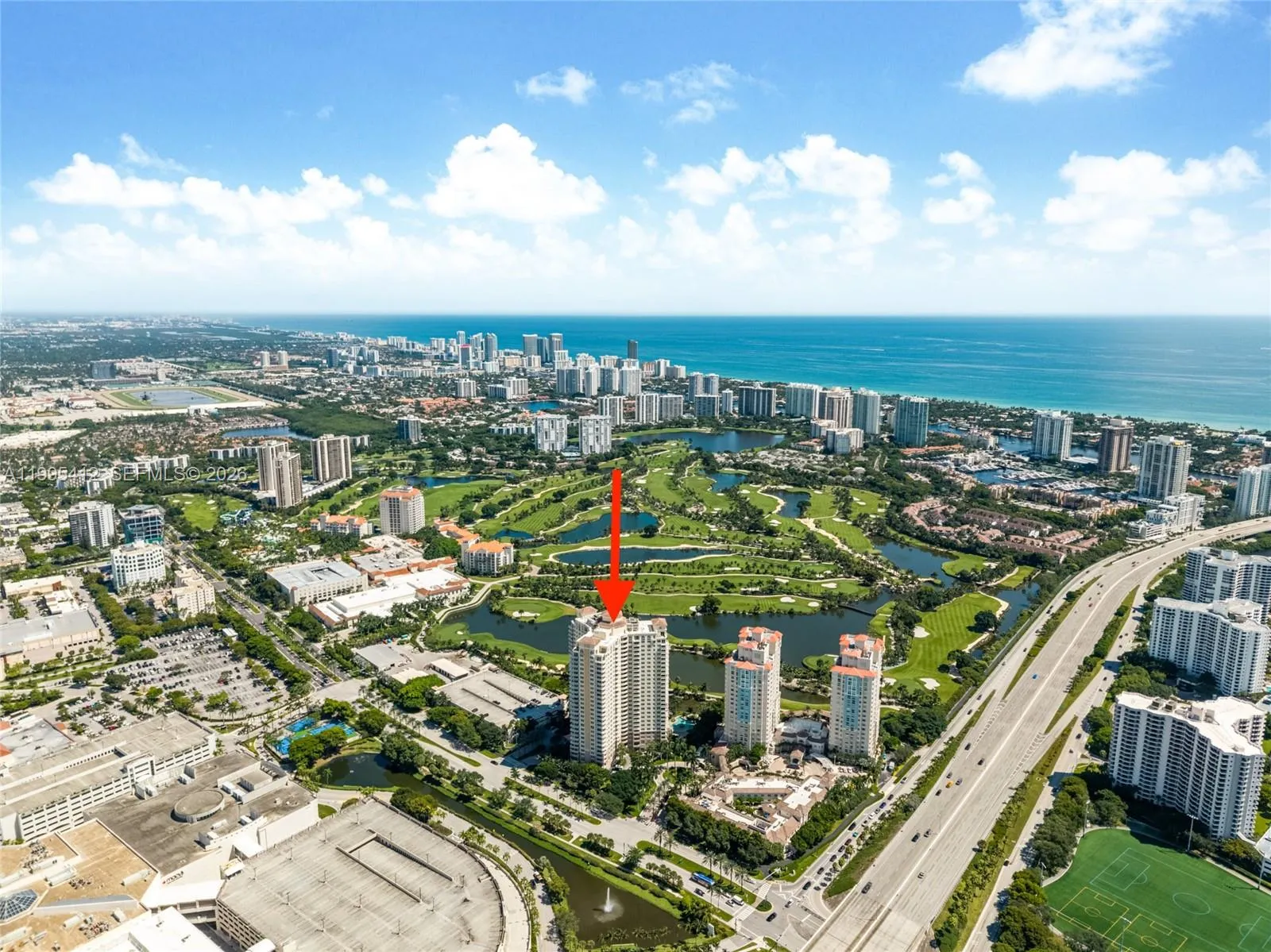 Great location! Gorgeous high-floor residence at Turnberry on the Green with city and sunset views. This light, bright 2-bed/2-bath features an open layout, granite kitchen, and tile flooring throughout. Convenience abounds with a full-size washer/dryer, one assigned parking space & plenty of closets with white wire closet system with shelves and mesh drawers . Turnberry on the Green sits in the heart of Aventura on the famed Turnberry Golf Course- across from Aventura Mall and moments to world-class beaches, dining & entertainment. Enjoy resort-style amenities including concierge & valet, two swimming pools, jacuzzi, a two-story fitness center, sauna, billiards & party room, BBQ area, playground, and more. Unit is being sold unfurnished. Dining room light fixture is excluded from the sale