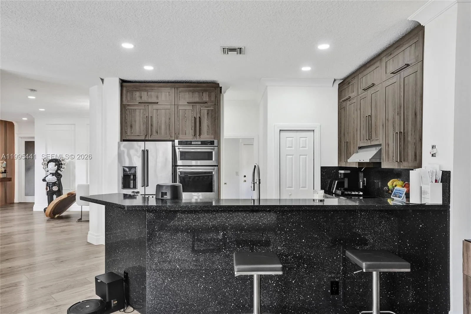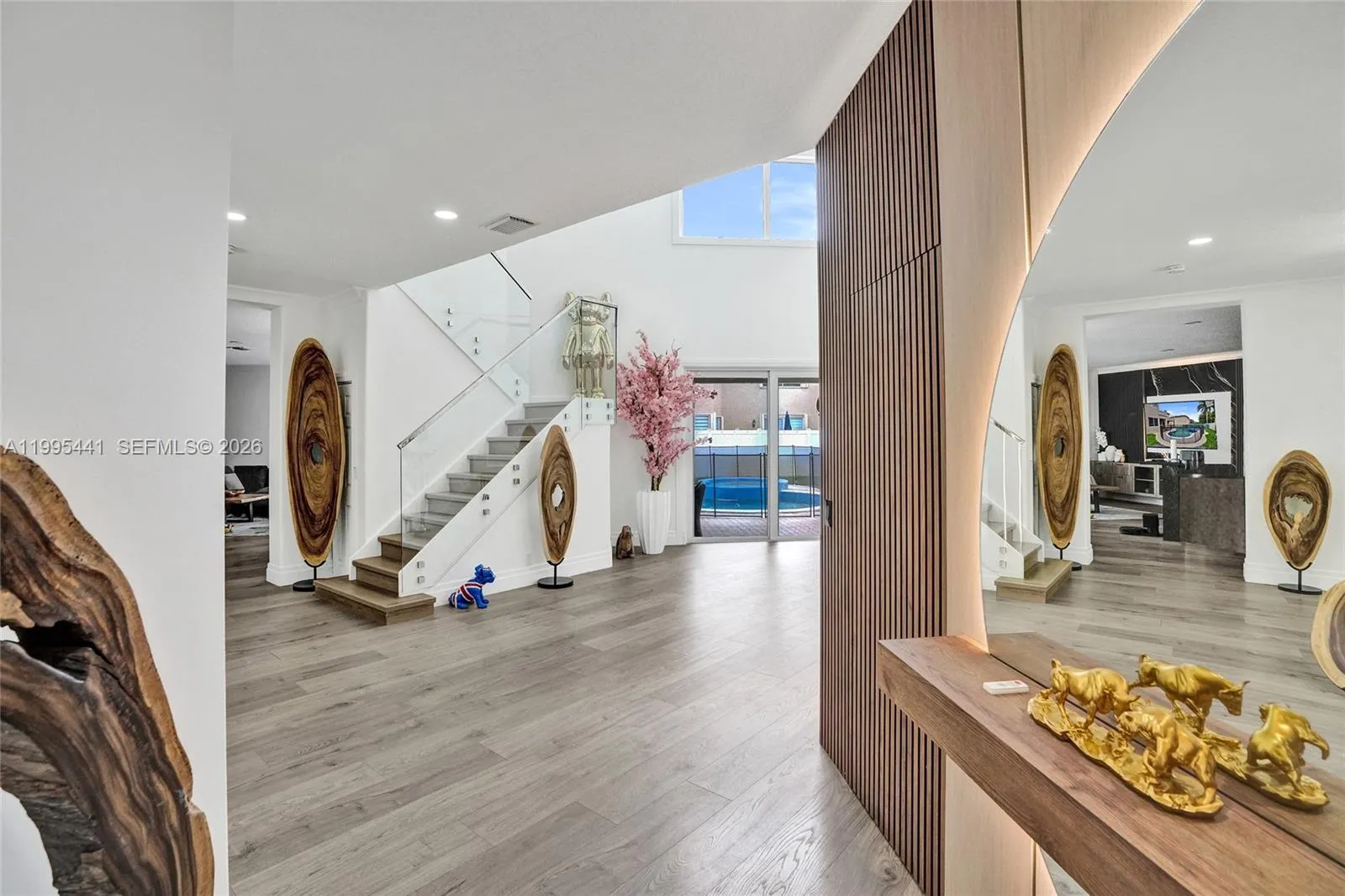 Navigate Home to this 5 bedroom 4 bathroom gated, pool home in the city of Pembroke Pines. Nestled in Harbourside Estates of the renowned Pembroke Shores master planned community. Home is one of the largest models in the area and great for multi-generational and growing families. An airy open floorplan with over 3600 square feet under air that brings in a lot of natural sunlight. Fully remodeled with chef style kitchen, Dekowood accent walls featuring hidden door to full downstairs en suite, spa like bathrooms, glass staircases, large balcony off the master, and full impact hurricane protection. The backyard is great for entertaining with covered lanai, pool with hot tub and a personal putting green. Full custom HD camera and alarm system, 24 hour manned security. This home has it all and more.