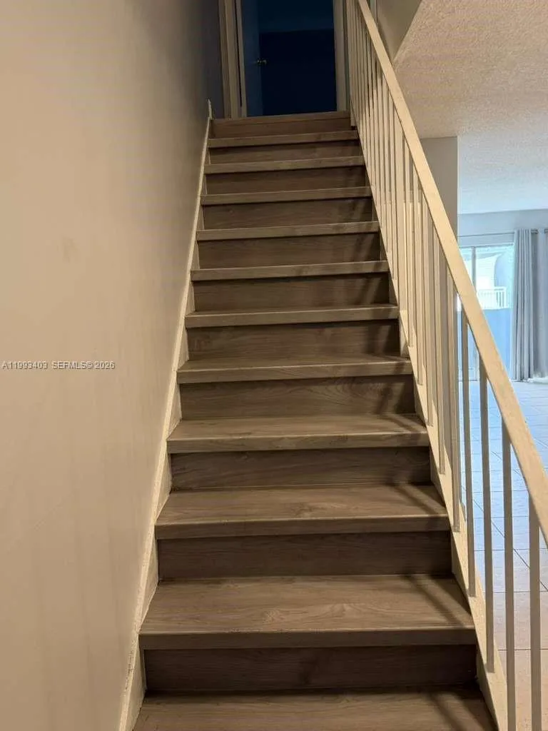 Beautiful 1-bedroom, 1.5-bath apartment located in the heart of Fontainebleau, a well-maintained and desirable neighborhood. This spacious two-story unit offers 1,125 sq. ft. of living space with an open-concept kitchen featuring stainless steel appliances. The first floor includes tile flooring, while the second floor & stairs features wood floors .rnrnEnjoy two private balconies and the convenience of a full-size washer and dryer inside the unit. The community is gated and offers excellent amenities, including security, a fitness center, playground, tennis and racquetball courts, clubhouse, and swimming pools.rnrnWater and sewer are included in the rent.
