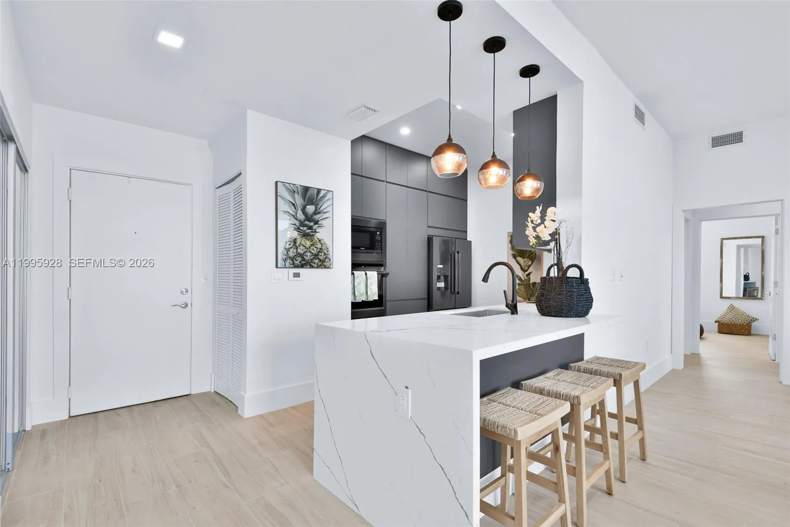 Completely upgraded condo with amazing location in the heart of Aventura. New kitchen with black stainless steel appliances, Italian tile flooring.High ceilings, modern bathrooms with Grohe shower system and glass shower enclosures. Top-of-the-line furniture and mattress. The unit has everything for your comfort fully, tastefully equipped property. Smart TVs -Custom-made closets, blackouts in bedrooms, brand new washer/dryer inside the unit. LED lighting, Quartz counter in the kitchen. Covered parking is available. The building features amazing amenities. Valet parking. Publix, shops, and restaurants at the ground level and in the close surroundings. The minimum rental period is 90 days. Very close to Aventura Mall, parks & the beach.