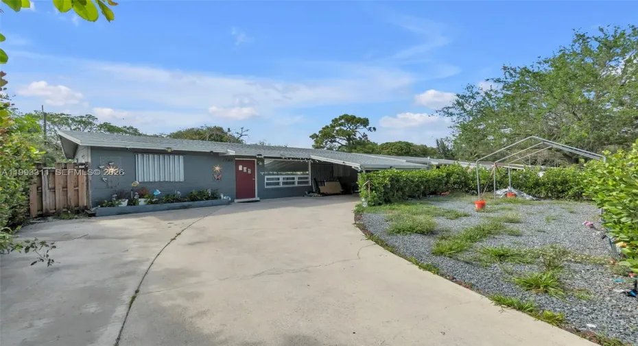 Charming 3-bedroom, 2-bath home with a functional split floor plan, carport, and spacious driveway! This well-maintained property features a brand-new roof, new water heater, and approximately 7-year-old AC for added peace of mind. Interior highlights include tile flooring throughout with terrazzo in the bedrooms, a spacious family room, and stainless steel appliances including refrigerator, stove, and dishwasher. The home is equipped with full hurricane shutters and a newly installed electrical service line from FPL. Enjoy outdoor space with a powered shed in the backyard—perfect for storage or a workshop. Great opportunity offering comfort, value, and versatility!