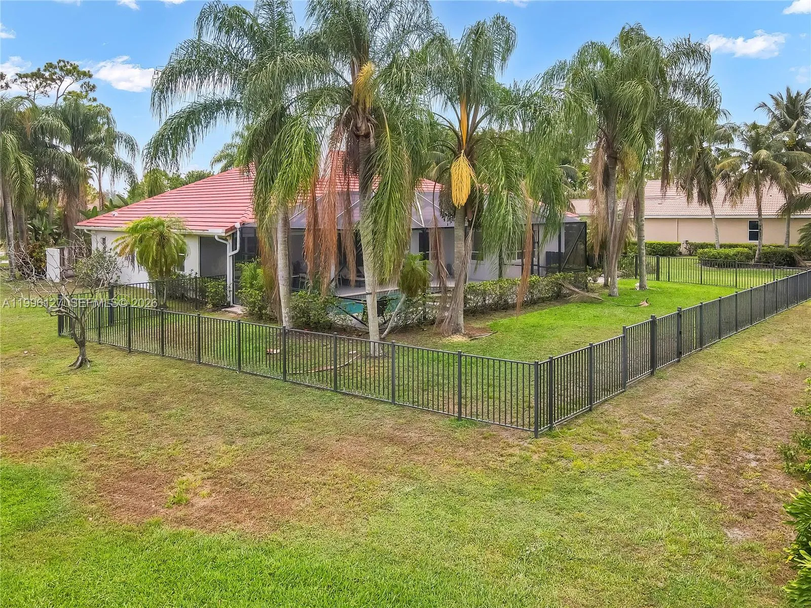 You can live in paradise! Completely furnished, this home sits on an acre with plenty of space in the desirable gated community of Bayhill Estates. Perfect house for families! This house has 4 bedrooms/3 bathrooms, volume ceilings and a great split floor plan. Perfectly located on a quiet cul-de-sac with golf views and a spacious driveway with a 3 car garage. The incredible outdoor area is the perfect private Oasis for entertaining with a beautiful large screened pool /spa. Golf through in-community PGA National is available.