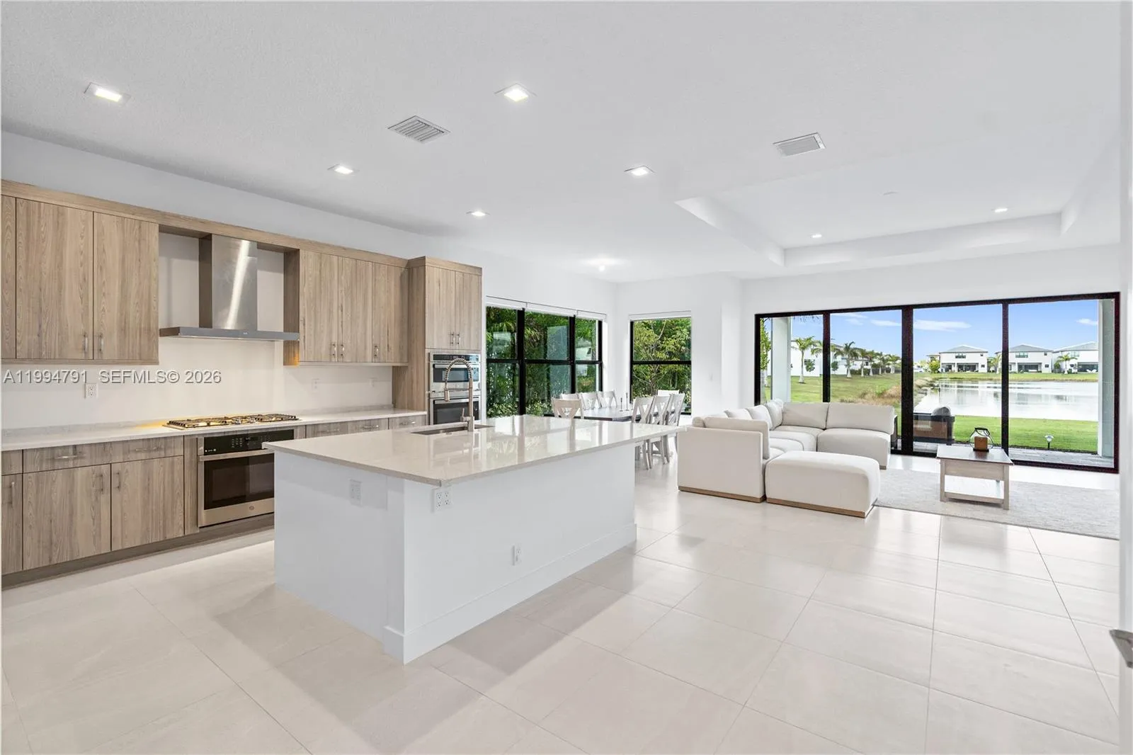 Perfectly positioned on lakefront lot 77 within Boca’s exclusive Lotus Edge, this exceptional Samoa Premium residence offers a prime setting, privacy, and a clean contemporary aesthetic finished in a sophisticated neutral palette that feels elevated yet easy to personalize. Enhanced by a tree-lined easement along the property’s edge and west-facing long-lake views with sunset backdrops, the setting is both serene and visually striking. The kitchen is appointed with an oversized quartz island, light wood-toned cabinetry, stainless steel appliances, double wall ovens, gas cooktop, and generous storage, all opening seamlessly to the great room and dining area with water views. The first-floor primary suite is thoughtfully positioned for privacy and complemented by a spa-inspired bath, while a main-level den/office adds flexibility. Upstairs, 3 bedrooms and 3 baths, together with a spacious loft and covered balcony, create an ideal layout for everyday living and elegant hosting. The garage is equipped with an electric vehicle charger. Per builder floor plan, the home offers approx. 3,249 interior sq. ft. and a large homesite with room for a custom pool. Lotus Edge offers a 39,000-square-foot clubhouse with pools, restaurant/bar, fitness and wellness amenities, racquet facilities, and indoor and outdoor sports. For buyers who want Lotus Edge without the wait for construction, this move-in-ready residence offers immediate enjoyment in one of Boca Raton’s most desirable communities.