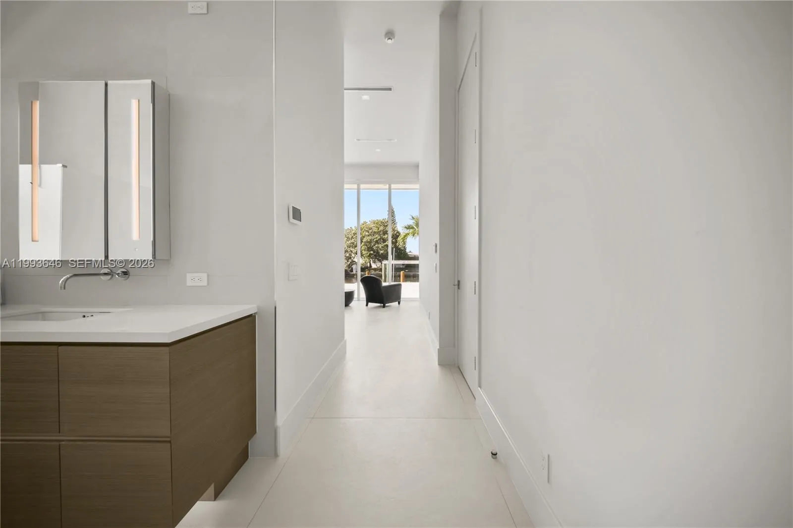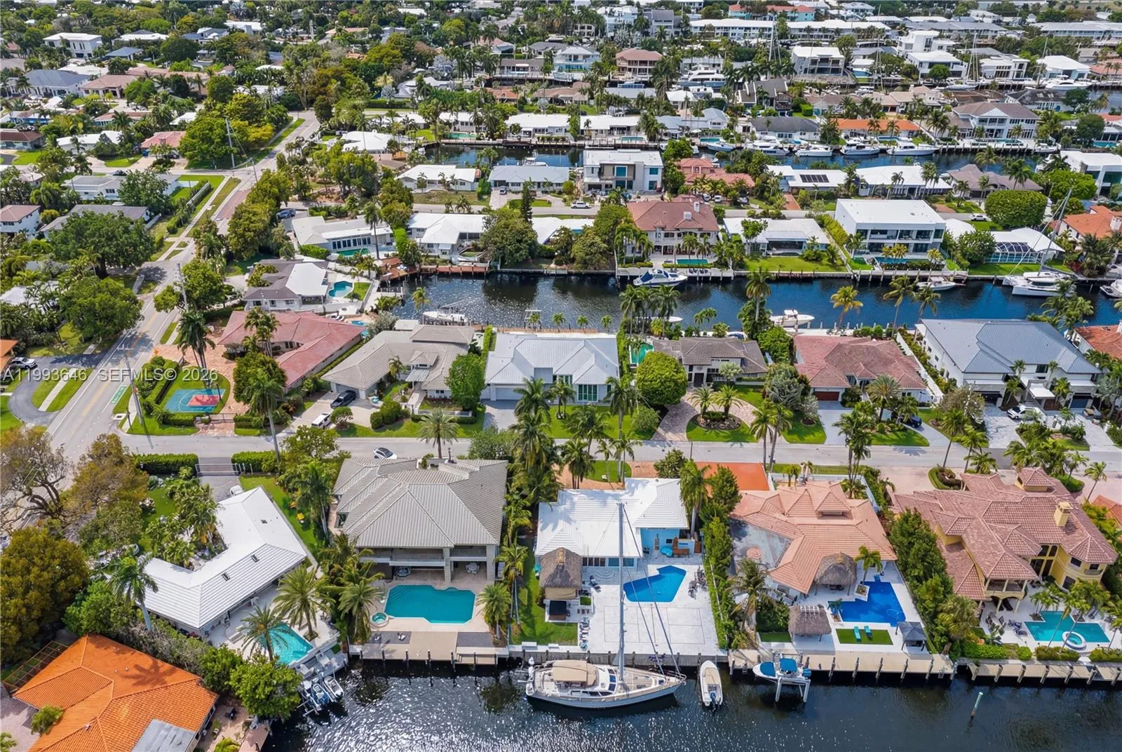 Experience elevated waterfront living in the prestigious Coral Ridge neighborhood of Fort Lauderdale. Built in 2017, this modern residence showcases clean architectural design with seamless indoor-outdoor integration, highlighted by soaring 13 ft ceilings and floor-to-ceiling low-E impact sliders that fill the home with natural light.rnrnDesigned for both luxury and functionality, the expansive covered patio (+/- 634 SF) features a tongue-and-groove ceiling, outdoor fireplace, grilling area, and spa for entertaining. The 52-foot saltwater lap pool with sun shelf runs parallel to the patio, creating a resort-style setting. Boaters will appreciate the 100-foot deepwater dock, 13k lb boat lift, direct Intracoastal access, & no fixed bridges.rnrnInside, the home is appointed with large-format 4’ x 4’ porcelain tile flooring, a chef’s kitchen with oversized island and BlueStar gas range, and an open-concept living space designed for gatherings. The primary suite offers a spacious walk-in closet and spa-inspired bath with dual vanities, soaking tub, and separate shower. The third bedroom has been converted into a custom wine room.rnrnAdditional features include natural gas powering key systems (stove, pool heater, outdoor fireplace, & 2 tankless water heaters), a full-house Cummins generator, AquaCal pool heat pump, newer A/C system w/ linear vents, and a durable metal roof. Multiple indoor and outdoor entertaining areas complete this exceptional South Florida waterfront offering.