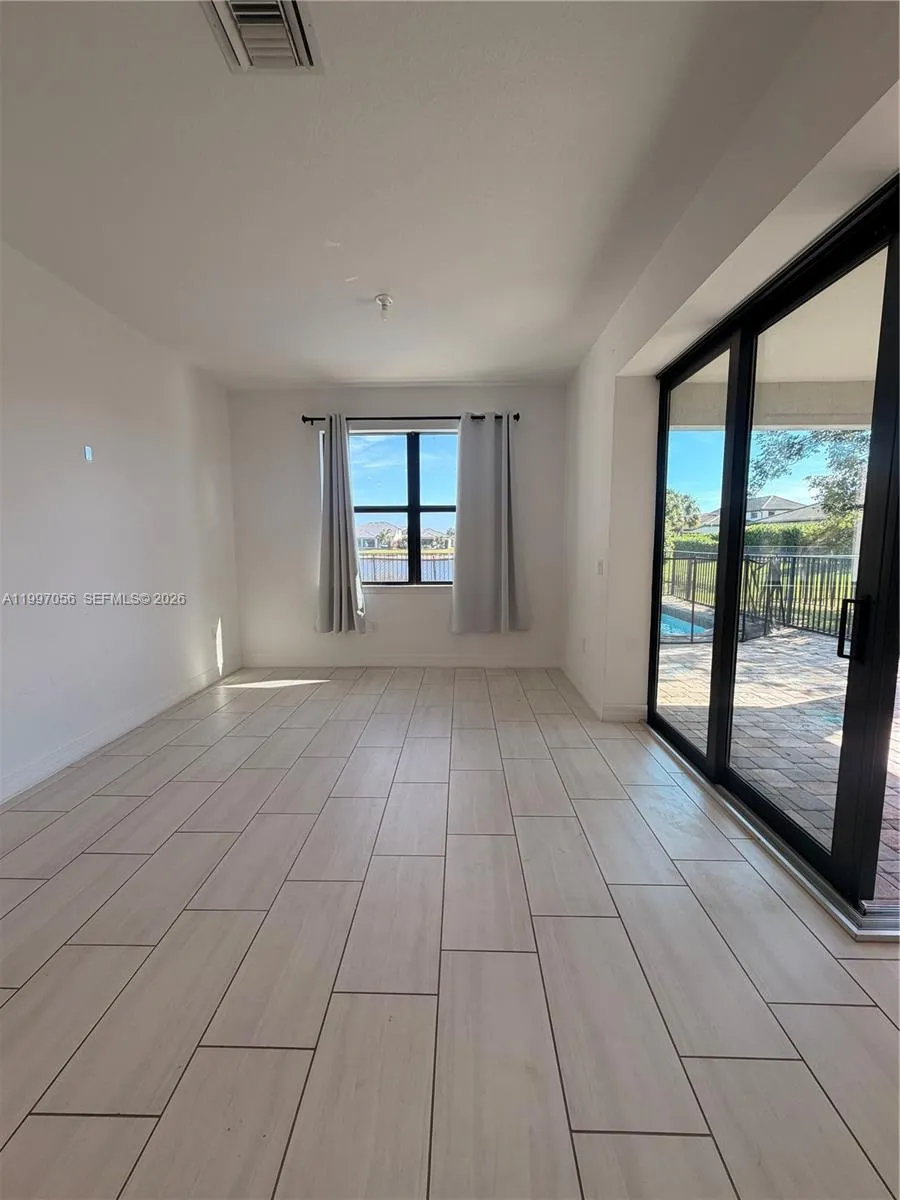 Beautiful 3-bedroom, 2-bath home in an elegant gated community, offering the perfect blend of comfort and style.This open-concept home, The spacious primary suite offers stunning lake views, along with a dual-sink vanity and walk-in shower. Two additional bedrooms and a guest bath are conveniently located at the front of the home. Enjoy indoor-outdoor living with retractable sliders leading to a large screened-in porch and a paved area overlooking the lake—ideal for relaxing evenings. Walking distance to community gym, The Fields feels like home. Located on the former historic Gulf Stream Polo Fields, this new Central Palm Beach County community offers consumer-inspired townhomes and single-family homes featuring flexible living spaces, open gathering areas, and well-appointed kitchens. Low HOA fees, located minutes from nearby shopping, dining, A-rated schools, and adjacent to the Florida Turnpike From the moment you turn down Polo Road.