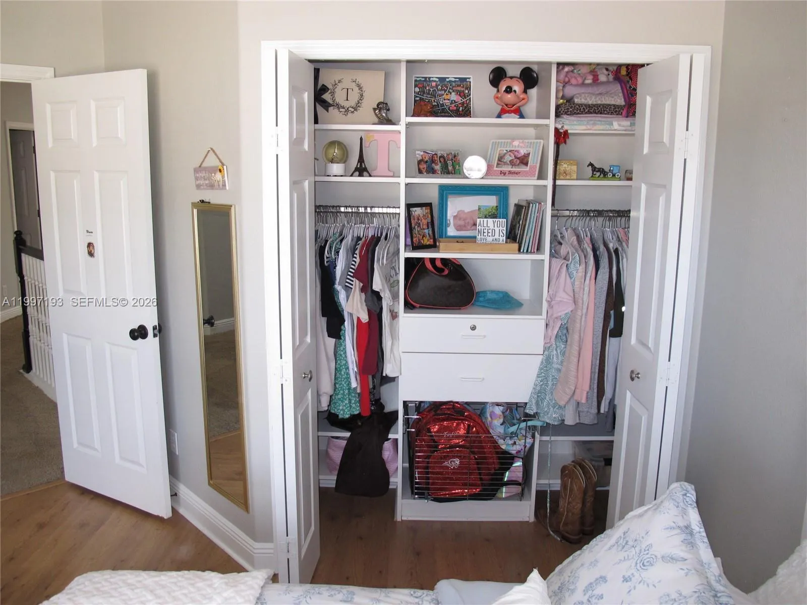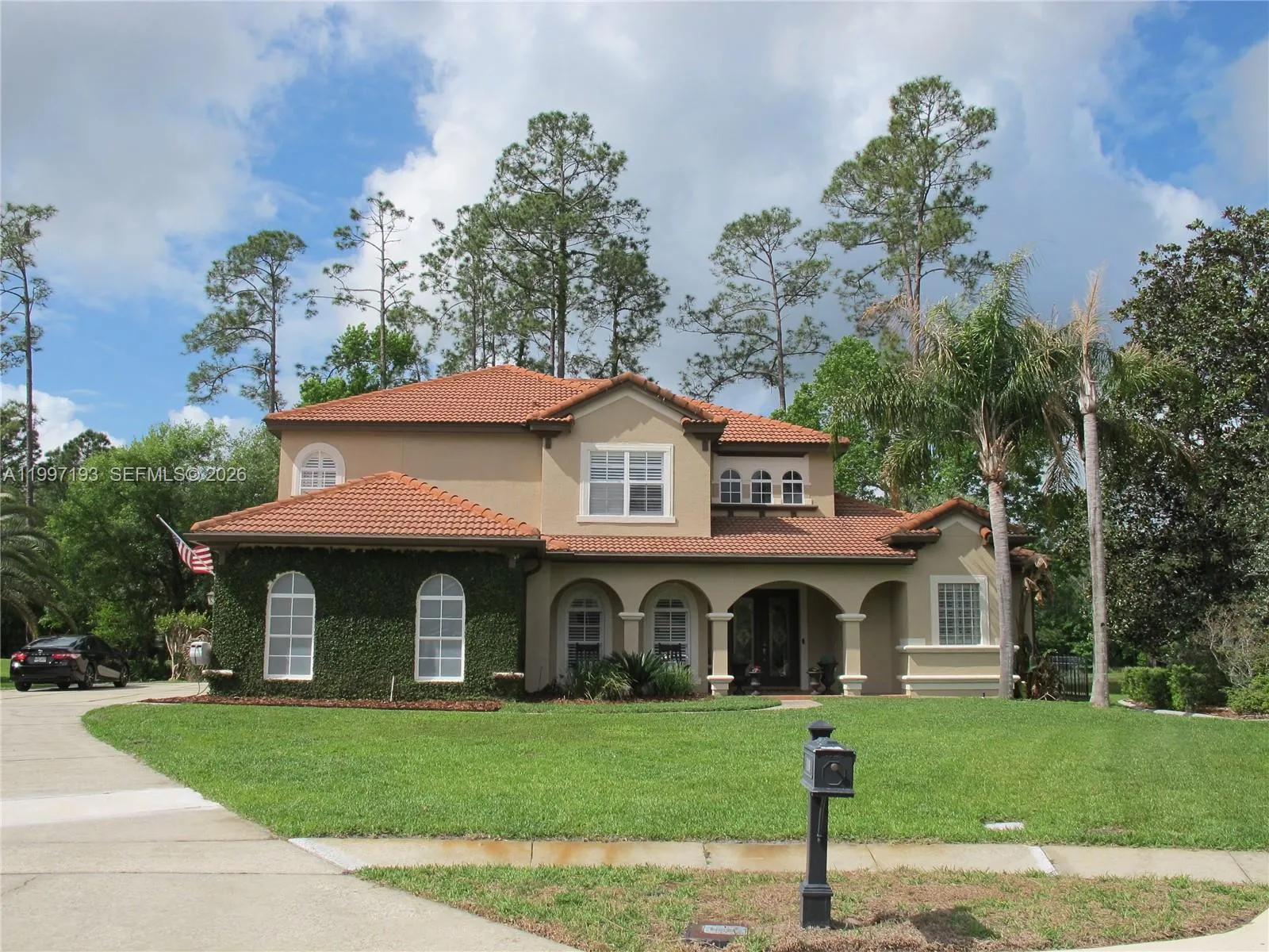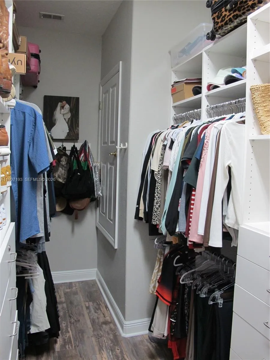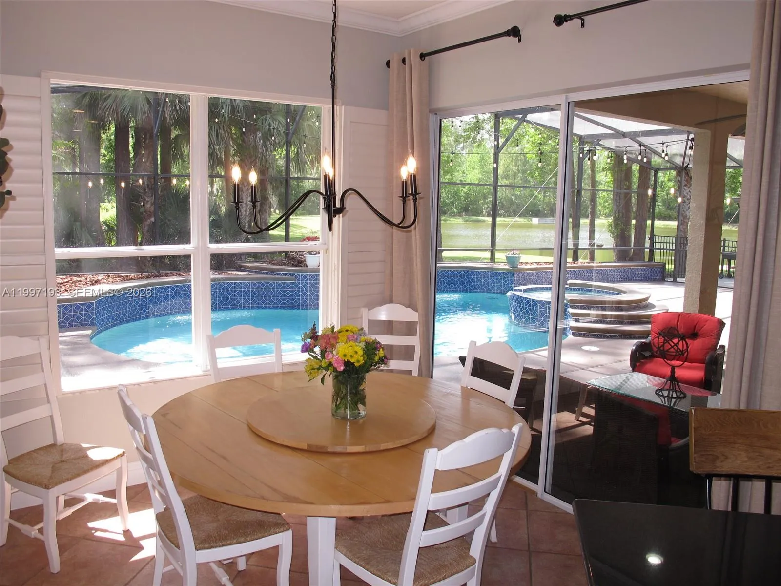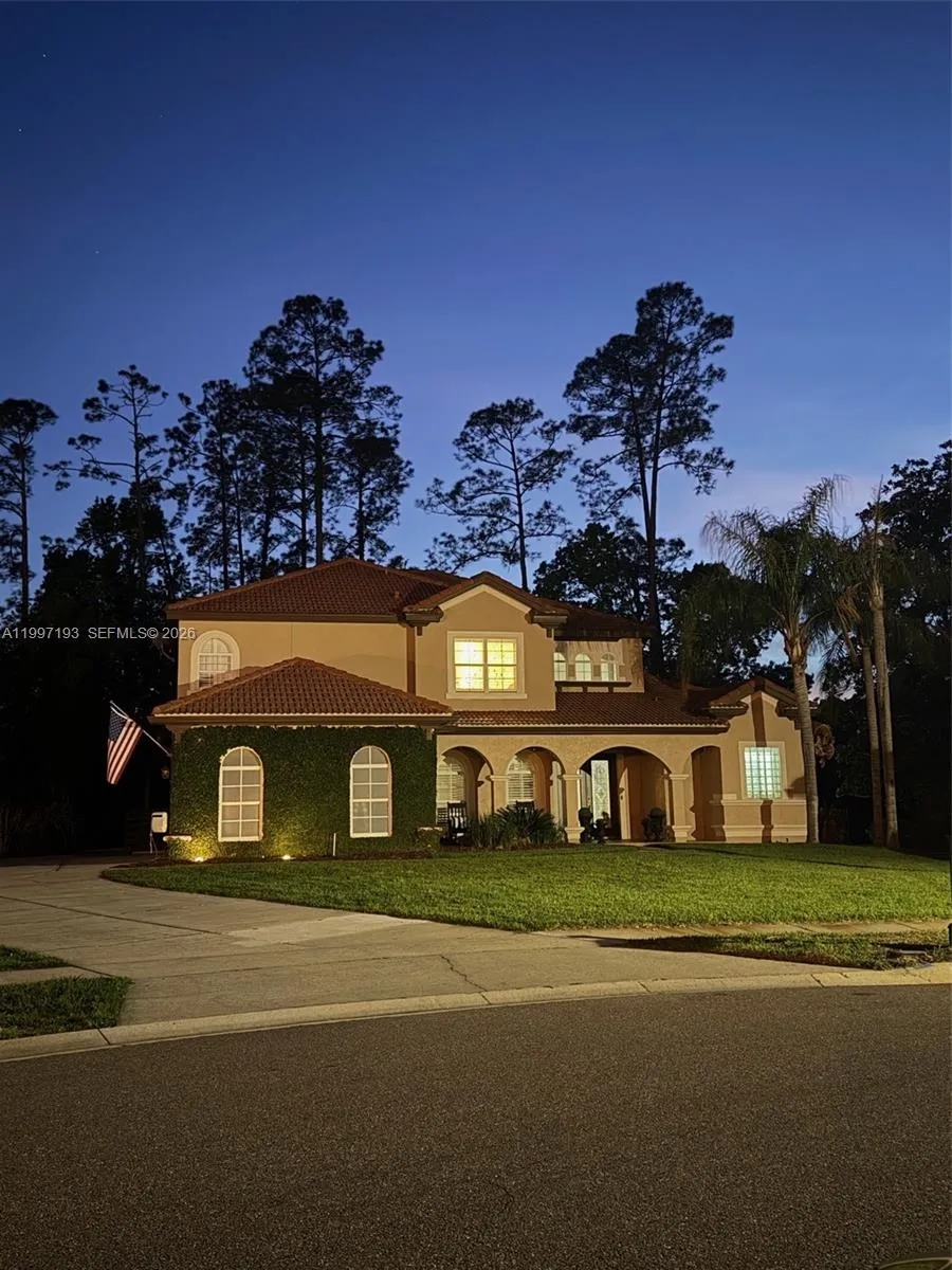 This stunning and well maintained 5 bedroom pool home nestled on nearly a half-acre cul-de-sac lot overlooks a lush forest and serene lake. Double glass front doors open to the formal living area with high tray ceilings and architectural designs. Enjoy the formal dining room complete with a white shiplap accent wall. The HUGE Family Room is big enough for the largest of families as well as a perfect entertaining space. A chef’s kitchen is highlighted by double wall ovens, walk-in pantry, 42” cabinetry, ample granite countertops, and a lengthy raised eat-in counter. The breakfast nook overlooks gorgeous views of the lake and heated pool and spa (salt water setup installed). The screened in pool/patio includes a private half bath accessible only from the pool area. The 250 gal. propane tank for the pool heater means it’s outdoor fun all year long! The sophisticated Master Suite. It features a cozy retreat area with a beautiful view overlooking the gorgeous pool/patio & lake. LARGE CUSTOM WALK-IN CLOSET with built-in organizers create more storage. A LAVISH MASTER BATH features 2 separate His/Hers vanities and Hers with a Makeup Vanity! There is a Roman Tub enclosed by two Roman Pillars & a custom dual head shower. All the secondary bedrooms, along with an enormous loft, and porch are located upstairs to keep the busy lives of the family private. Other upgrades include: Plantation shutters and built-in speakers throughout and a 50 amp EV/RV charging port!