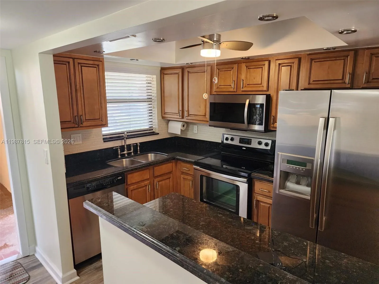 BEAUTIFULLY MAINTAINED CORNER UNIT on 1st floor with lake view from screened patio! PRICED TO SELL! ALL REASONABLE “As-Is” CASH OFFERS CONSIDERED! Roof 2024 and assessment paid in FULL! 55+ active adult community of Sunrise Lakes (PHASE 3 HAS RESERVES!). Remodeled kitchen w/granite countertops, wood cabinets, SS appliances. Primary suite w/huge walk in plus additional closets. Freshly painted! Primary bath updated w/walk in shower. 2nd BR w/walk in closet, 2nd bathroom remodeled w/shower. High end laminate flooring in living areas, ceramic tile in bedrooms. A/C 2006, water heater 2024, microwave 4 yrs. New impact windows in bedrooms/kitchen, front door & slider NOT impact. Sprinkler system hardwired. Common laundry same floor. Storage room 3rd floor. Assigned parking space #3 steps from front door + ample guest. Community boasts multiple pools, private golf course, clubhouse, game room, theater, gym, movies, bingo night. Centrally located. Ideal for seasonal or year-round living! Close to shopping, restaurants, Casino’s. REQUIREMENTS per Association: 670 credit score, income $3,000/month clear after expenses, 6-months maint. held in Sunrise Lakes escrow for 1 year. No bankruptcy/foreclosure in past 7 years. Hi-hats in kitchen not hooked up and AS IS! See virtual tour to preview video! SELLER CHOOSES TITLE COMPANY & WILL PAY FOR BUYERS TITLE INSURANCE POLICY. Maintenance is $652.80 per month.