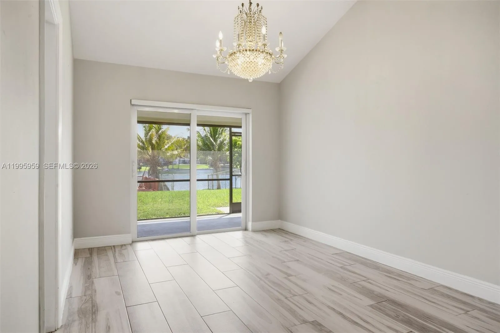 An outstanding 3 bed 2 bath north facing lake property, with beautiful upgrades, big back yard and large lake deck! As you enter this unit from a palm lined street and face its semi-circular driveway with plenty of foliage, the excitement builds. You can’t help but notice the stunning grey wood-like tiles throughout the living areas and the elegant wine bar to your right. A formal dining section with a great view of the lake is right there. Next is the spectacular remodeled kitchen with white cabinets, Frigidaire appliances and black & white mottled countertops. The family room boasts built in cabinetry and a TV above a fitted wall unit with quartz top! Both bathrooms are completely remodeled with lovely fixtures, soft close cabinets, wall tiles, solid countertops and captivating details. Your master is a wonderful, well-lit haven with double customized closets, double basins, a glass enclosed shower and lovely solid counters. The bedrooms have engineered wood floors, and the home has nice ceiling fans/lighting in every room. It’s completed with impact windows, a caged porch at back, large back yard with space for a pool plus huge deck for enjoying the lakeside. This close nit community is in Davie where everything is nearby. This home is a gem for anyone who wants a move in ready lakeside residence. There is no HOA and only a $250 annual fee for lake maintenance.