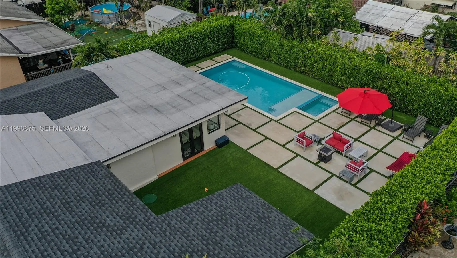 Fully remodeled 4-bedroom, 3-bath home in the desirable Westchester area. This property features 2,767 sq ft of living space on a 9,375 sq ft lot with a modernized interior throughout. The kitchen has been completely remodeled with new appliances, and all bathrooms have been updated. Additional upgrades include a new roof (2023) and impact windows (2026). Enjoy a spacious backyard with a pool built in 2022, perfect for entertaining. Ample parking with circular driveway and no HOA. Centrally located near major highways, shopping, dining, and schools.