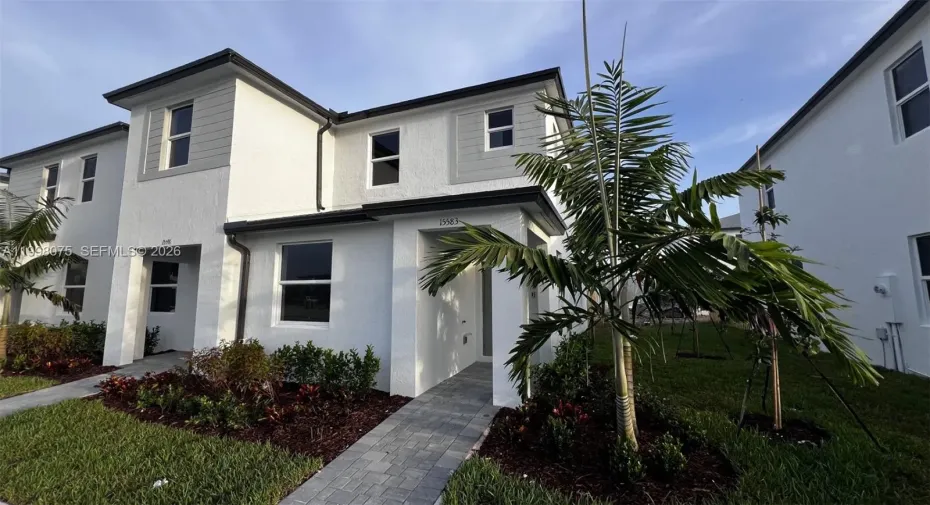 This new construction two-story corner lot townhome 3/3 at Vivant the Promenade Collection features a lot of light and brightness. Offering on the first-floor one-bedroom full bath ideal for home office, guests or In-Laws, and upstairs the other two bedrooms including full-sized bathrooms and walk-in closets. The open concept for kitchen, dining, family room and eat-in kitchen isle is ideal for entertaining with convenient access to the fenced patio. Washer and dryer located at the second floor. New blinds installed trough out all windows. Two parking spaces assigned on front of the unit. Excellent location near Florida Turnpike, Homestead attractions, Everglades and quick access to the Florida Keys. The property is just minutes from the Redlands, Black Point Park and Marina.