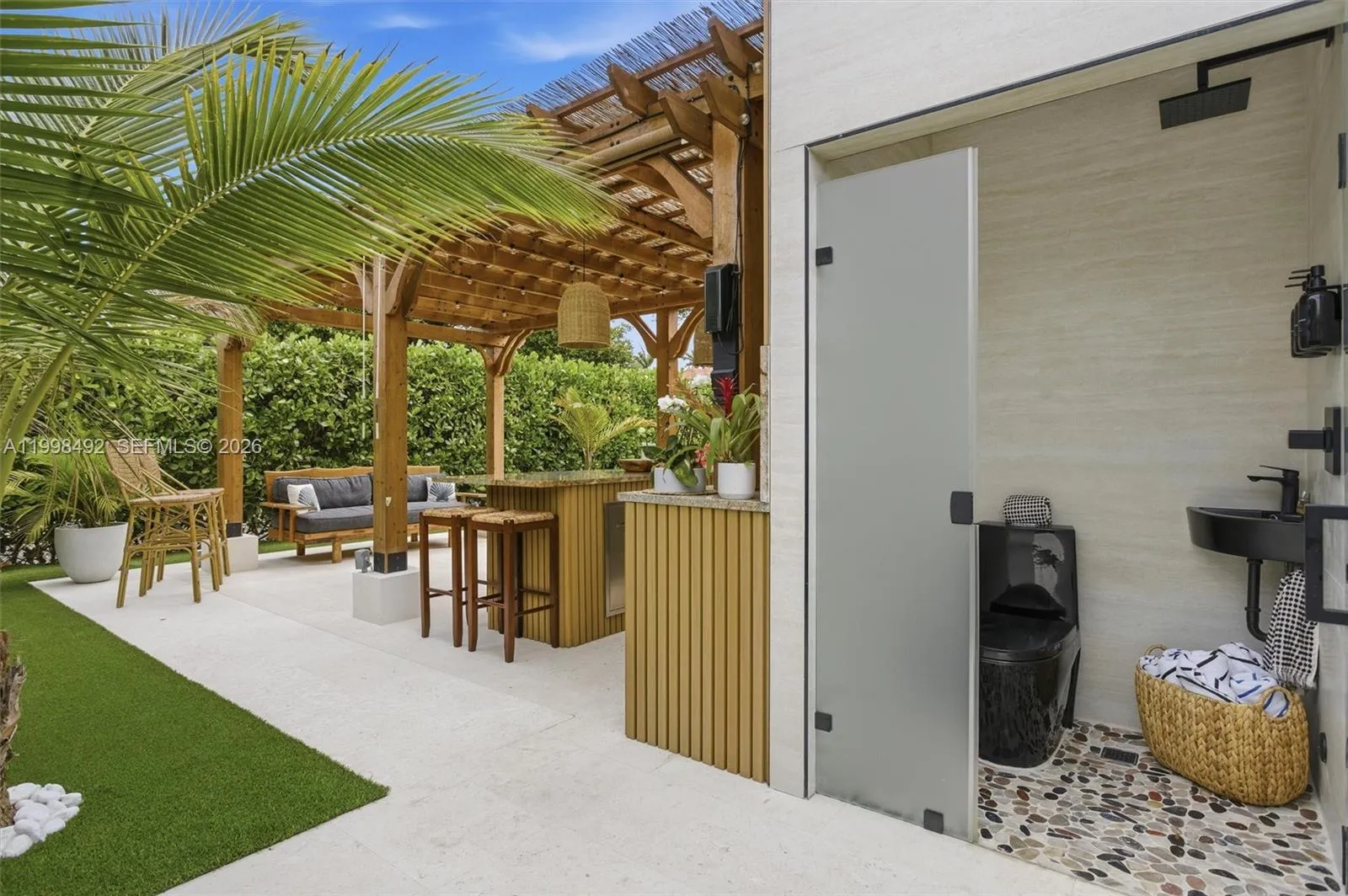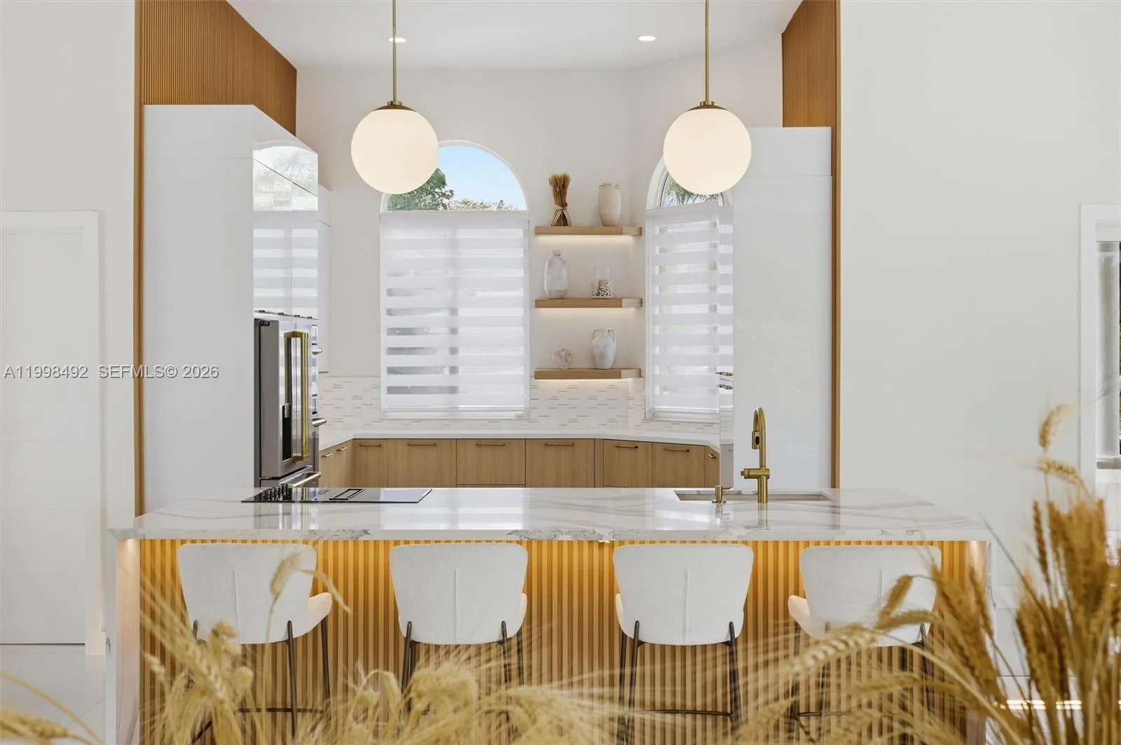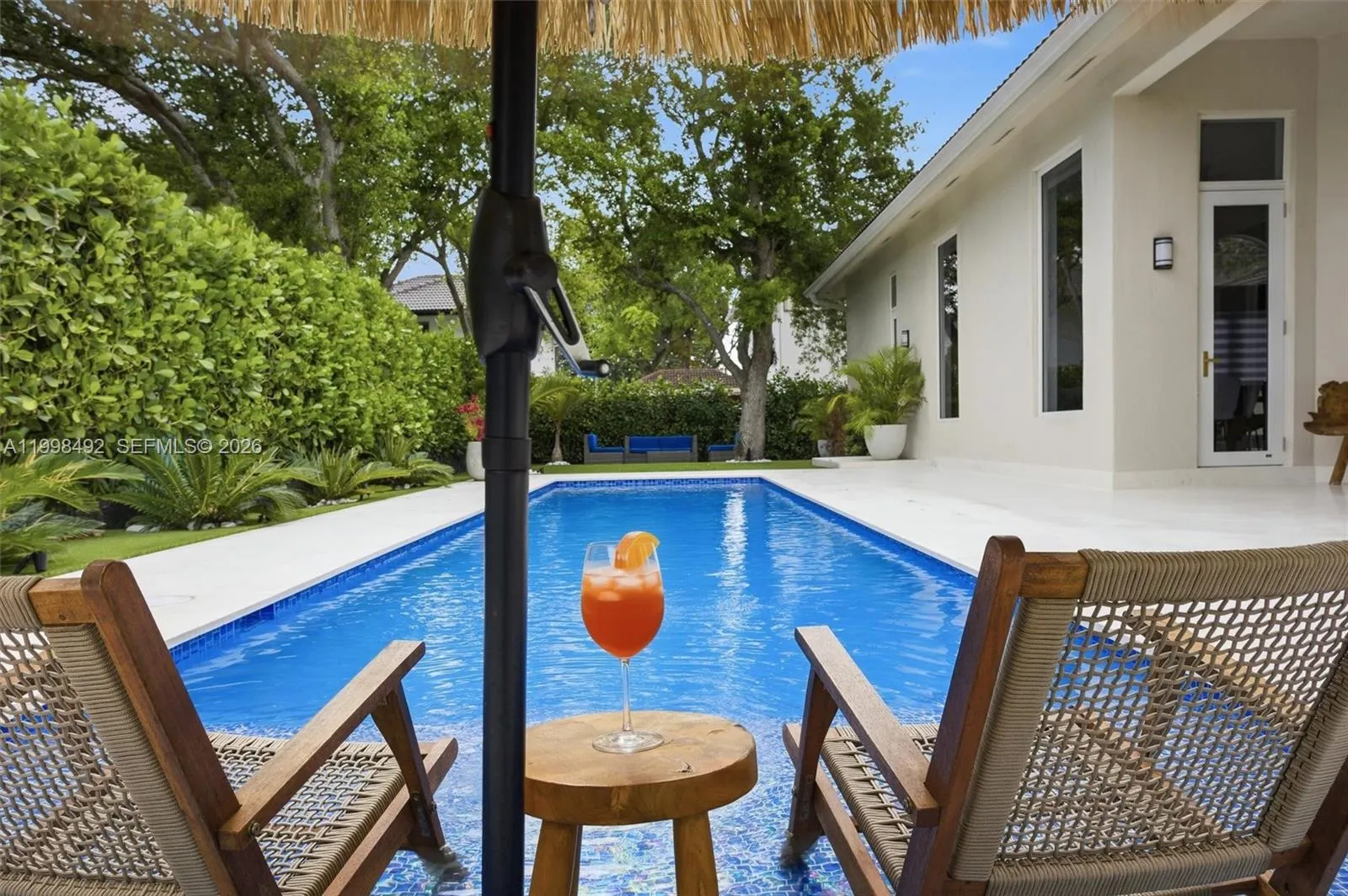 Stunning fully renovated residence featuring modern design and high-end finishes throughout. This home offers high ceilings, abundant natural light, and an open-concept layout ideal for today’s lifestyle.rnThe luxury kitchen showcases a large island, custom cabinetry, premium appliances, and elegant wood and quartz finishes. Spacious living areas seamlessly connect to the outdoor space, perfect for entertaining.rnThe outdoor area is designed for enjoyment, featuring a modern pool, covered pergola with bar, and a generously sized backyard offering great privacy.rnThe property includes a spacious primary suite with direct outdoor access, walk-in closet, and a spa-like bathroom with glass shower and upscale finishes.rnSituated on a large lot with circular driveway, excellent curb appeal, and located in a quiet, established neighborhood.rnMove-in ready, ideal for buyers seeking style, comfort, and privacy.