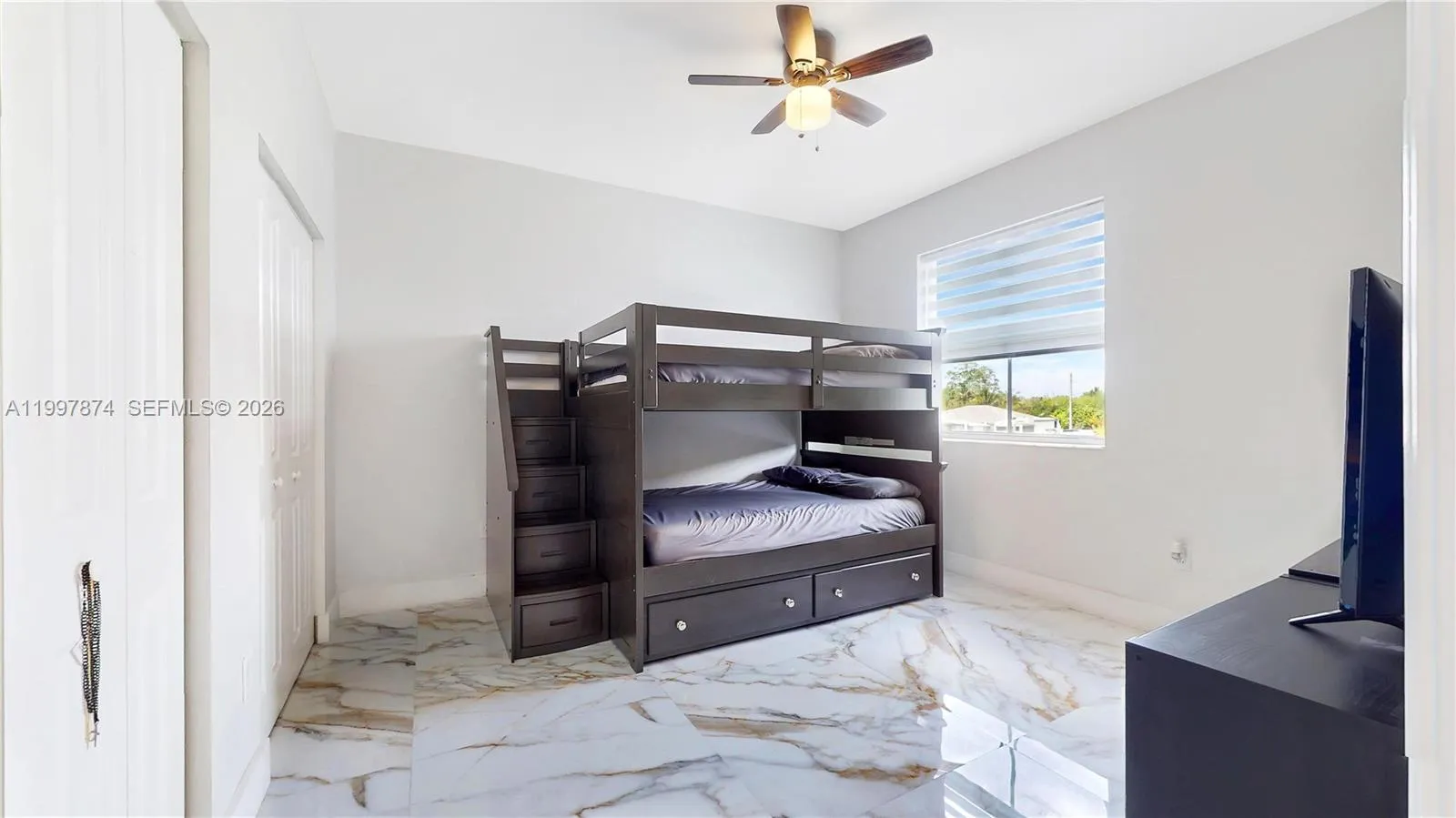 Experience modern luxury in this stunning, newly constructed 2024 residence located in the heart of Homestead. This home is a showcase of contemporary design, featuring sleek marble floors, elegant recessed lighting, and stylish modern light fixtures throughout. The gourmet kitchen is a chef’s dream, anchored by premium quartz countertops, while the main living areas are elevated by a sophisticated accent wall. For ultimate peace of mind and energy efficiency, the home is fully equipped with impact-resistant windows and doors, complemented by chic zebra blinds for perfect light control. The thoughtfully designed floor plan offers versatility and comfort, including a convenient first-floor bedroom and full bath, perfect for guests or an office. Upstairs, the sprawling primary suite serves as a true sanctuary with architectural tray ceilings, while a second spacious bedroom also features its own private en-suite bathroom. Practicality meets style with a three-car garage, providing ample storage and parking. Outside, the property sits on a massive lot offering a sprawling backyard with limitless potential—perfect for those dreaming of designing a custom pool, lush tropical gardens, or a private orchard of fruit trees. This turn-key masterpiece combines high-end finishes with the space and freedom to create your own outdoor oasis.
