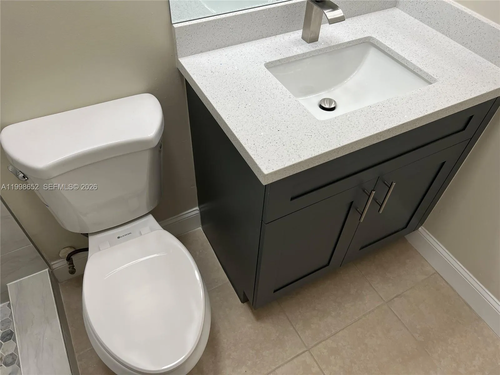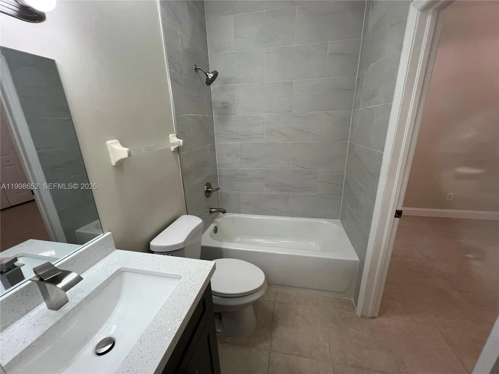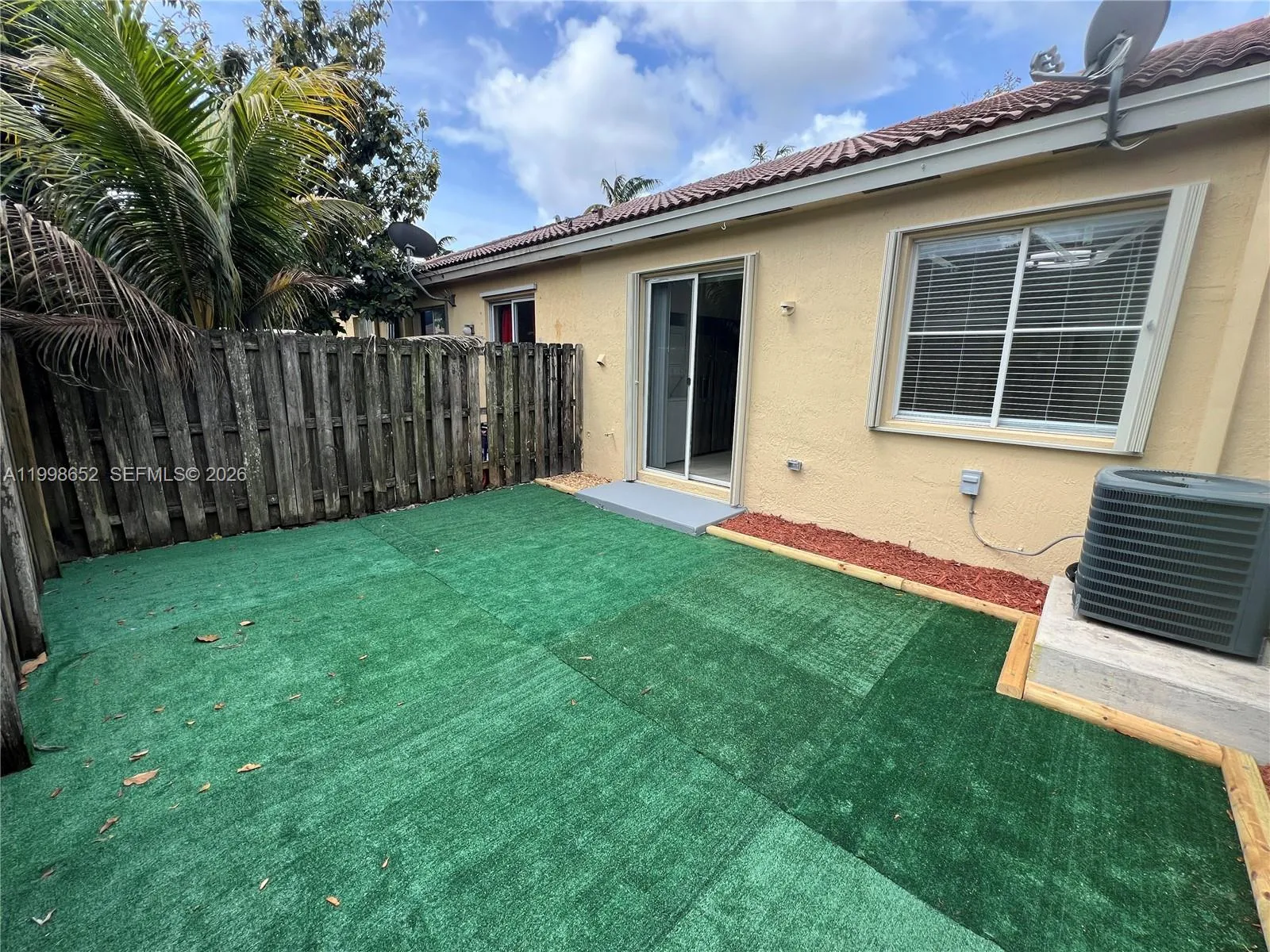 COMPLETELY REMODELED ONE-STORY TOWNHOUSE TO PERFECT CONDITION. THIS HOME HAS BEEN PROFESSIONALLY PAINTED THROUGHOUT IN A BEIGE COLOR WITH WHITE TRIMS. THERE ARE LARGE 16X16 TILES THROUGHOUT. THE FOYER ENTERS THE LIVING ROOM AREA WITH A HALLWAY TO THE LEFT LEADING TO THE FIRST BEDROOM AND THE JACK AND JILL BATHROOM WITH AN ACCESS DOOR COMING FROM THE SECOND BEDROOM. THE LIVING/DINING ROOM AREA IS SPACIOUS AND LEADS TO THE KITCHEN. THE MASTER BEDROOM AND THE SECOND BEDROOM ARE ALSO ACCESSIBLE FROM THE LIVING ROOM. THE NEWLY REMODELED KITCHEN HAS BEAUTIFUL, GRAY-COLORED SHAKER-STYLE CABINETS, QUARTZ COUNTERTOPS, AND ALL-NEW STAINLESS-STEEL APPLIANCES. THERE IS AN EAT-IN COUNTERTOP FOR FASTER FAMILY CLEANUP. THE LAUNDRY CLOSET IS IN THE KITCHEN WITH A STACK WASHER AND DRYER MACHINE. SLIDING GLASS DOORS LEAD TO THE BEAUTIFUL PATIO WITH BRAND NEW ARTIFICIAL GRASS THAT WAS PROFESSIONALLY INSTALLED FOR EASY MAINTENANCE. THE MASTER BEDROOM FACES THE BACK AND IS LARGE AND SPACIOUS. IT HAS A WALK-IN CLOSET AND A MASTER BATHROOM THAT WAS COMPLETELY REMODELED WITH THE SAME CABINETS AS THE KITCHEN. THE HALLWAY BATHROOM WAS ALSO REMODELED IN THE SAME STYLE. THERE ARE STAINLESS-STEEL LIGHT FIXTURES THROUGHOUT. ALL THE WINDOWS HAVE NEW BLINDS AND ARE PROTECTED BY ACCORDION HURRICANE SHUTTERS. FIND THE YOUTUBE VIDEO WITH THE MLS NUMBER.