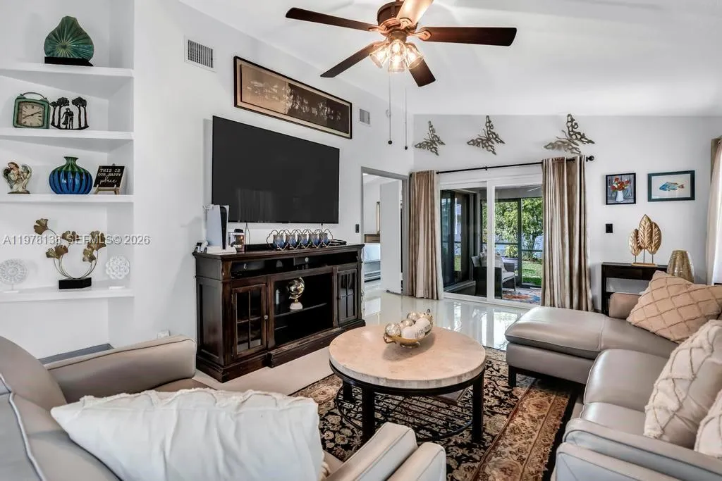 Beautifully updated home with a functional floor plan that offers an open feel while maintaining separation between living areas. Major upgrades include a BRAND NEW ROOF (2026), IMPACT WINDOWS AND DOORS, New A/C, and a Newer Split A/C unit in the garage as well. Interior features include New Luxury Tile Flooring throughout, a fully remodeled guest bathroom, and a completely renovated primary bathroom, all completed with permits. Spacious, well-designed kitchen featuring white real wood cabinetry and a convenient side coffee bar/tea station. Fully enclosed screened patio with peaceful lake and fountain views. Large backyard with room for a pool and several variations of exotic fruit trees! Two-car garage with upgraded flooring. HOA covers common areas and community pool. Conveniently located near parks, dining, shops, I-75 and 595 for ease of commuting, and zoned for Weston-area A+ schools with the benefit of lower Sunrise taxes.