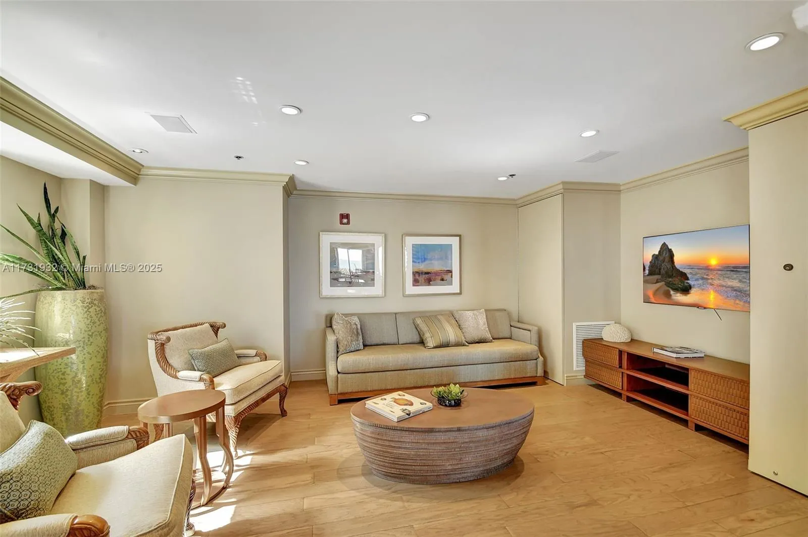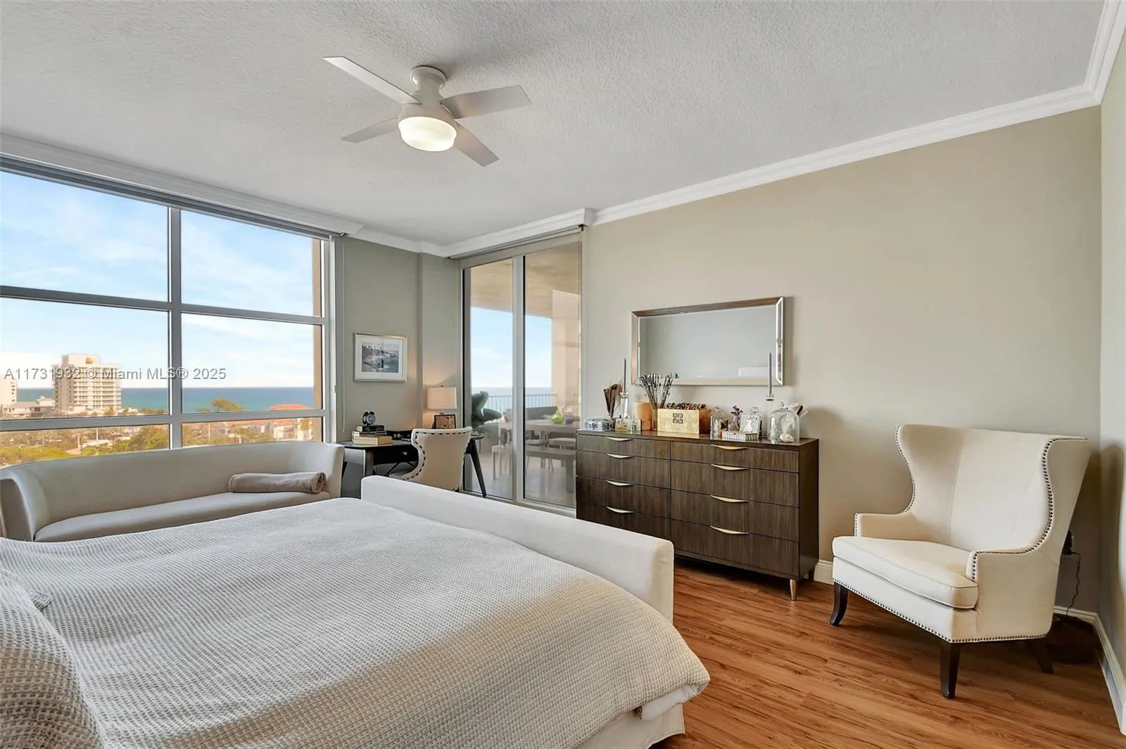 Perched on a high floor, this renovated Siena model spans over 2,230 square feet with 2 bedrooms, 2.5 baths, and a converted den that functions as a guest suite and office. Two balconies frame sweeping views of the ocean, Intracoastal, and city skyline. The kitchen is outfitted with custom granite counters and backsplash. The primary bath combines marble, quartz, and a built-in spa for a true retreat experience. The building has undergone a full transformation with upgraded elevators, redesigned common spaces, and a new reception. Residents enjoy access to a staffed private beach pavilion, 24-hour security, and full-service amenities. Sophisticated finishes and a clean transitional style make this a polished, turnkey coastal residence.