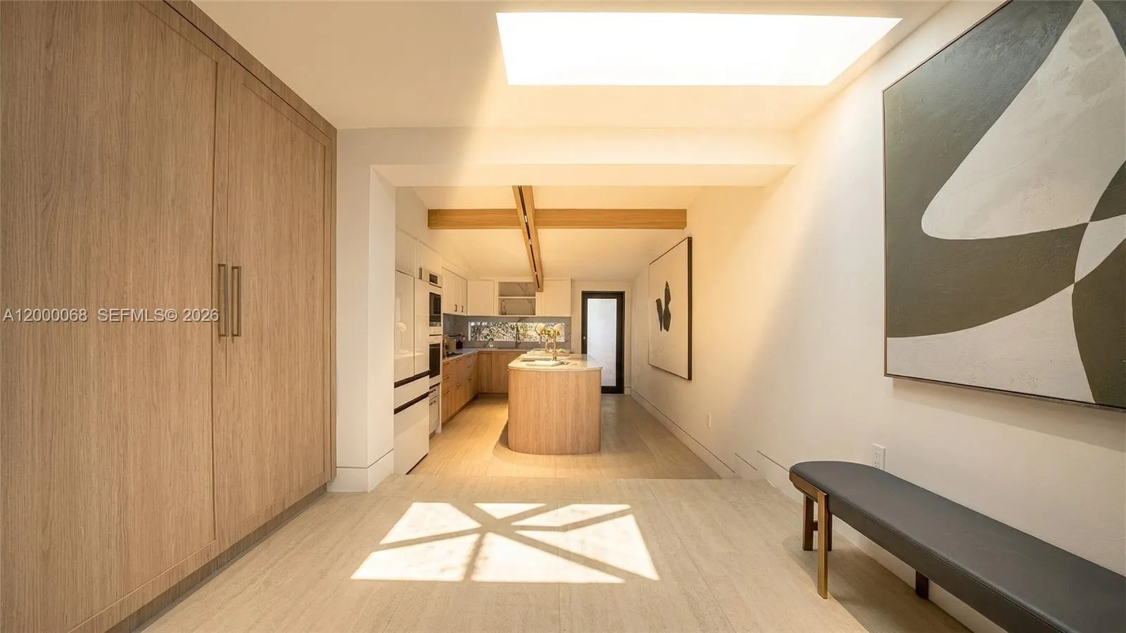 Located within the exclusive gated community of Keystone Island, this fully renovated residence is a true architectural statement, masterfully designed by Tamara Feldman. Offering 6 bedrooms and 5.5 bathrooms, including a separate maid’s quarters, the home blends refined design with exceptional functionality.rnrnThe interiors showcase a warm, contemporary aesthetic, featuring high-end materials, custom millwork, and elegant wood accents throughout. Soaring vaulted ceilings with exposed beams, combined with multiple skylights, flood the home with natural light and enhance the sense of volume and openness.rnrnThe chef’s kitchen is appointed with premium finishes and custom cabinetry, seamlessly flowing into the main living areas. Expansive living spaces are framed by clean architectural lines and curated textures, creating a cohesive and sophisticated environment throughout.rnrnThe primary suite offers a serene retreat with bespoke detailing, generous closet space, and a spa-inspired bathroom designed with premium stone and refined finishes. Each additional bedroom is thoughtfully designed, offering comfort, privacy, and flexibility for family or guests.rnrnOutdoors, a beautifully designed pool area provides a private oasis, ideal for both relaxation and entertaining. The landscaped grounds and seamless indoor-outdoor flow enhance the overall living experience, creating a true South Florida lifestyle.