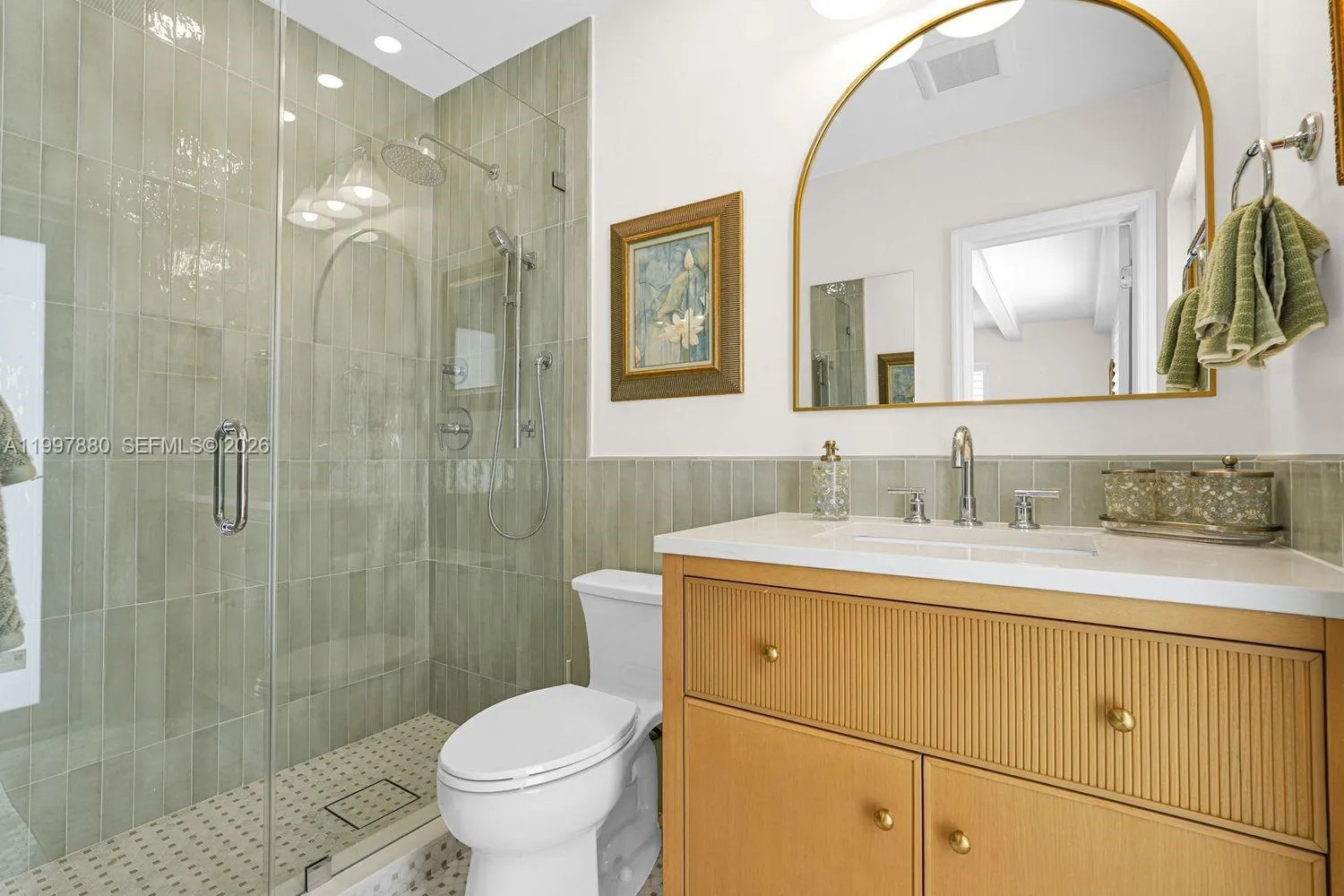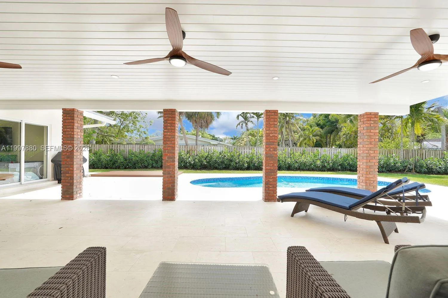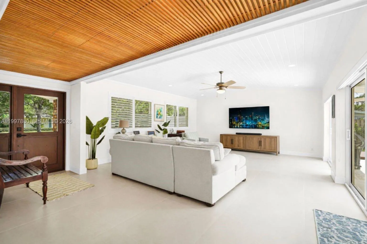 Welcome to this newly renovated Palmetto Bay residence, where timeless design meets elevated family living. Set on a prime corner lot with mature oak trees and lush landscaping, this home offers exceptional privacy, curb appeal, and a sought-after location in one of Miami’s most desirable neighborhoods, and flood X zone. The heart of the home is a stunning transitional modern kitchen with Taj Mahal quartzite countertops, custom white oak accents, abundant storage, and a large island perfect for daily living and entertaining. Light-filled living areas create a warm yet refined feel, while the family room features soaring pitched ceilings with tongue-and-groove wood detail and sliding glass doors for seamless indoor-outdoor living. This thoughtfully designed home offers 4 spacious bedrooms, each with custom closets and plantation shutters. Two private entrances and newly paved driveways provide flexibility and ample parking. Outside, enjoy a true backyard retreat with a covered terrace, resort-style pool with beach entry, new travertine pavers, and plenty of green space. Additional highlights include a 2-car garage, covered parking for a boat, RV, or golf cart, and a storage shed. Major upgrades include a tile roof, new PVC plumbing, new septic tank and drain field, new A/C ducts, impact windows and doors, resurfaced pool with new pump, and full irrigation system. Ideally located near Coral Reef Park, top-rated schools, The Falls, and daily conveniences.