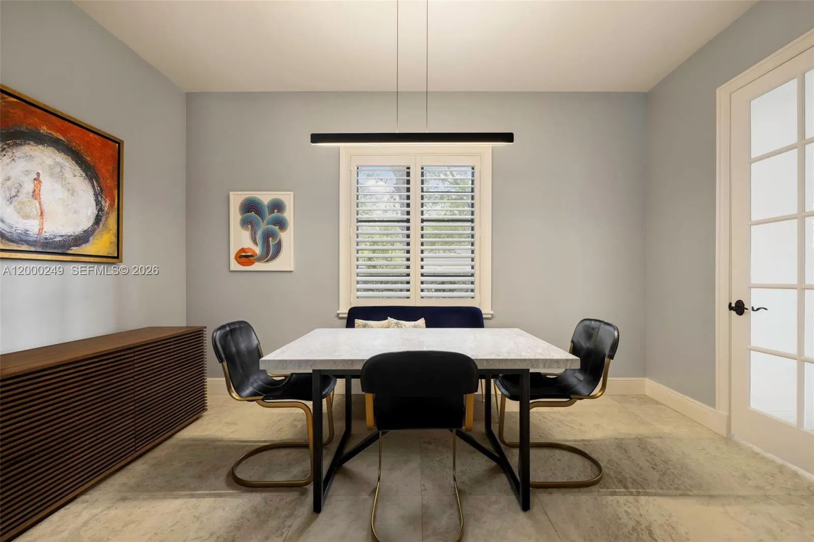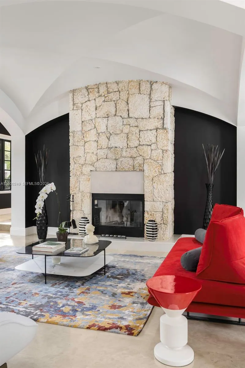 Villa Amalfi, a Mediterranean estate in the heart of Coral Gables, offers refined privacy just moments from Merrick Park and Maggiore Park. This gated corner residence is architecturally rich with Roman columns, arched doorways, French doors and windows, and coral stone accents, all set within lush tropical landscaping with mature Sylvester date palms, Japanese blueberry hedges, and manicured grounds. Interiors are thoughtfully restored with marble flooring, Brazilian teak wood, and a grand living and dining space defined by curved ceilings and a dramatic coral stone fireplace. The gourmet kitchen features SubZero, Wolf, and Miele appliances with quartz countertops, opening to a spacious family room and covered terrace ideal for outdoor dining. Multiple terraces, a Sonos sound system, and serene garden views create seamless indoor-outdoor living. Recent upgrades include travertine marble patios, new driveway pavers, enhanced lighting, custom closets, and refined baths, elevating comfort and design throughout this timeless residence.