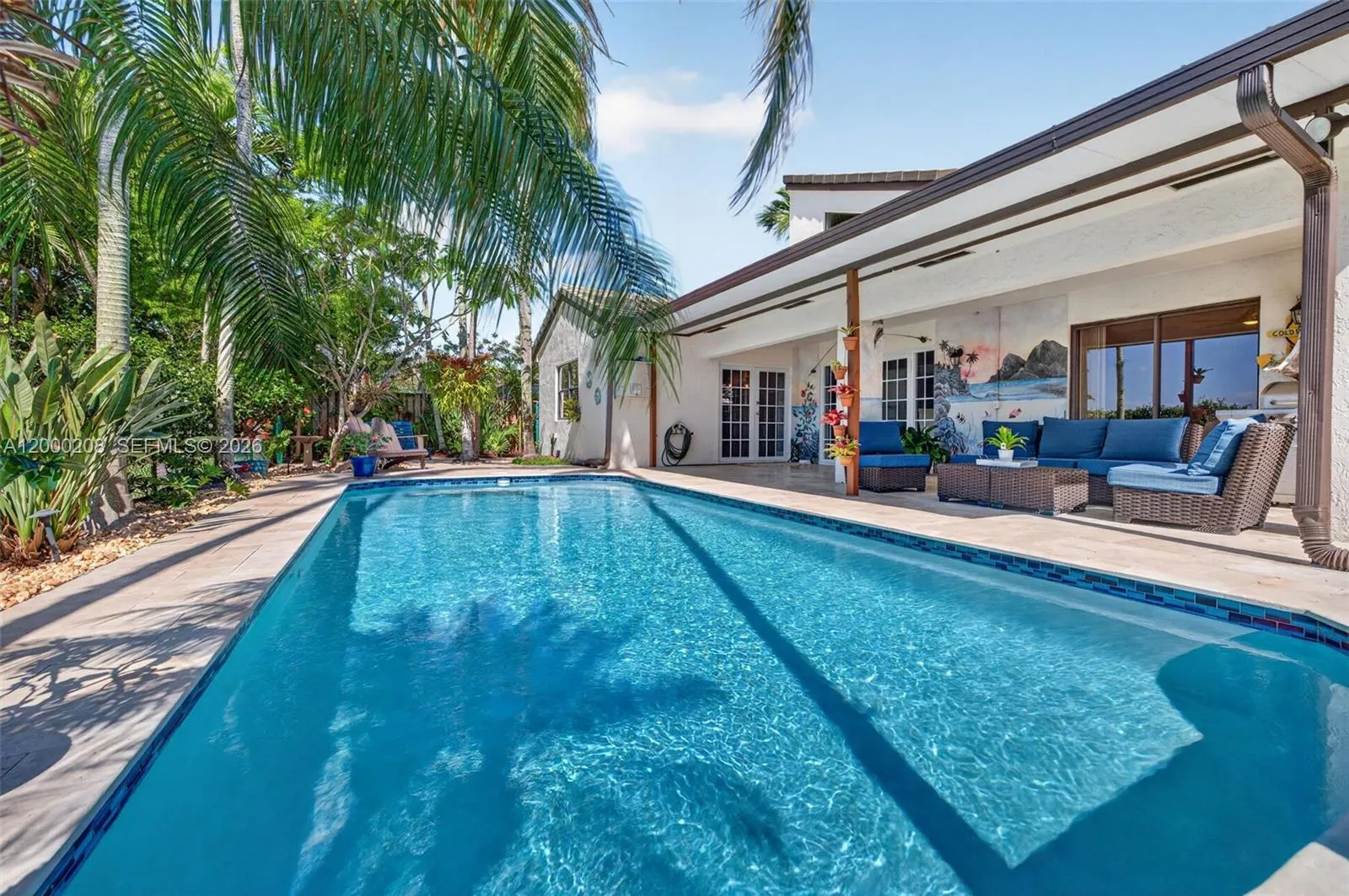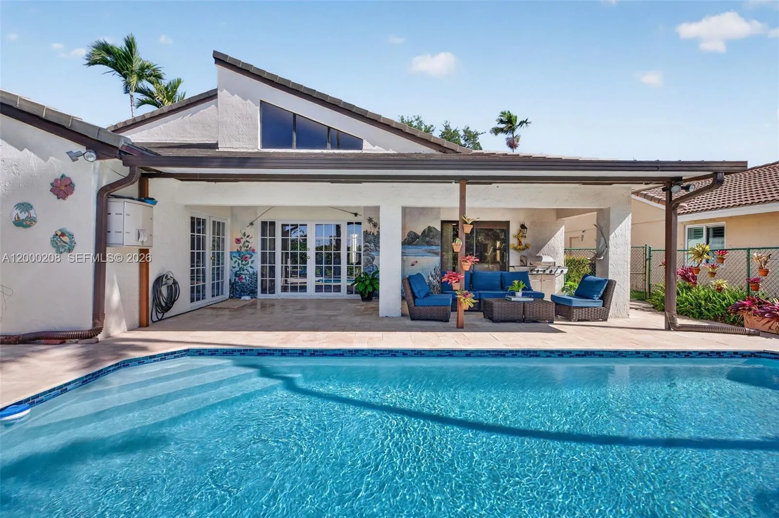 YOUR FUTURE HOME AWAITS in the highly sought-after community of Ivanhoe in west Davie. Beautifully upgraded two-story single-family pool home situated on private cul-de-sac. Spacious 3 bed/2.5 bath split floorplan + versatile loft that can easily serve as a 4th bedroom. Soaring ceilings & abundant natural light welcome you into the main living areas. Elegant French double doors in formal living room open to backyard oasis featuring travertine deck, palm trees, automated lighting & lush landscaping, shaded overhang for relaxing & entertaining & fully fenced. Main suite on first floor offers 2 walk-in closets, sliding doors to patio and ensuite bath with dual vanities, separated tub & step-in shower. Your dream kitchen showcases white quartz counters, soft-close white cabinetry with pull-outs, beveled tile backsplash, stainless steel appliances, wine rack and wine cooler, island with bar seating. Kitchen flows seamlessly into family room with French doors leading to patio & pool area. Highlights include updated baths, new downstairs tile & baseboards, plantation shutters & under-stair storage. Garage offers shelving, extra fridge & washer/dryer. PEX re-piping (2023), pool Diamond Brite (2022), A/C (2022), roof (2018) & WH (2019). Spectacular curb appeal with expanded concrete driveway with modern slabs & artificial turf, automated exterior lighting. The home backs to a serene 8-acre green space of neighborhood park with tennis, basketball, volleyball, playground, walking paths.