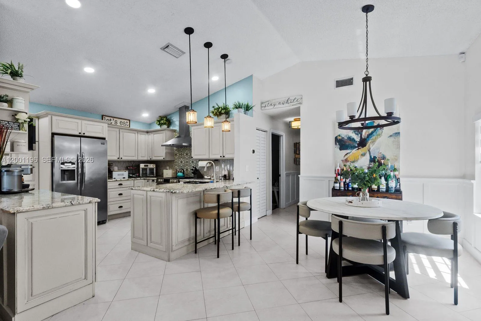 Step into this meticulously maintained and thoughtfully upgraded home, where comfort meets style. Major improvements provide peace of mind, including a new roof (2024), new yard fencing (2024), and a freshly painted exterior (2025), giving the home exceptional curb appeal. Inside, you’ll find a bright and inviting layout enhanced by elegant touches like solid wood interior doors, custom wainscoting in the living and dining areas, and stylish zebra blinds throughout. The updated kitchen is perfect for entertaining, featuring granite countertops, stainless steel appliances, and a sleek range hood. The home offers a beautifully renovated master bathroom (2022) and an updated guest bathroom, combining functionality with modern finishes. A dedicated laundry room with new tile and custom cabinetry adds convenience and extra storage. Enjoy peace of mind with major system upgrades, including a tankless water heater (2023), main electrical line upgrade (2023), electrical panel replacement (2018), and A/C system (2017). Step outside to your private backyard retreat, complete with new sealed pavers, an above-ground pool, and a French drain system for added drainage efficiency—perfect for relaxing or entertaining year-round. This home is also equipped with advanced safety and smart technology, including impact windows and doors (2018), Ring security system with cameras and doorbell, a Nest thermostat, keyless entry, and smart-controlled exterior lighting.