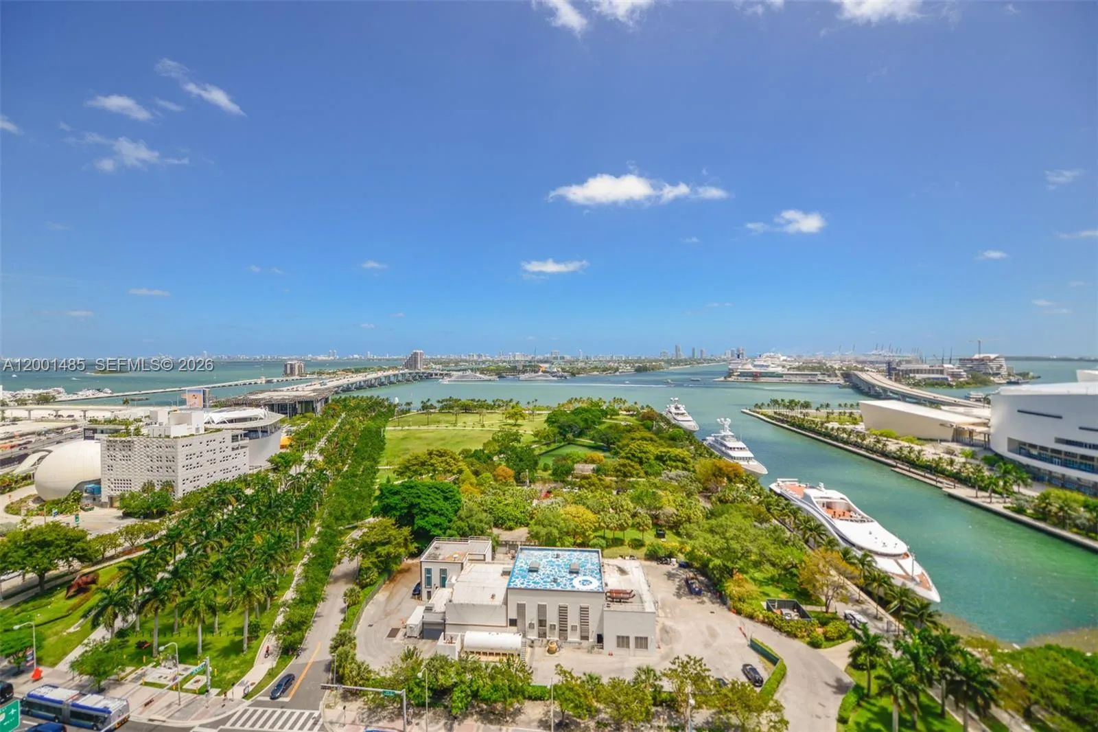 Breathtaking, unobstructed views of Biscayne Bay, Museum Park, cruise ships, and the Miami Beach skyline from every room! This spacious 1 bedroom pus den offers a flexible layout with 2 full bathrooms and an expansive private terrace, perfect for enjoying sunrise views. Floor-to-ceiling impact glass fills the unit with natural light, and the den is ideal for a home office or guest space. Enjoy over 20,000 sq ft of resort-style amenities, including a fitness center, full-service spa with sauna and steam rooms, lap and resort-style pools, hot tub, theater, club room, valet, and 24-hour concierge. Ideally located in the heart of Downtown Miami, directly across from the Kaseya Center, Pérez Art Museum Miami, and Phillip and Patricia Frost Museum of Science, and just steps from the Adrienne Arsht Center for the Performing Arts. Minutes to Brickell, South Beach, Midtown, Wynwood, the Design District, major highways, MIA, and the Port of Miami.