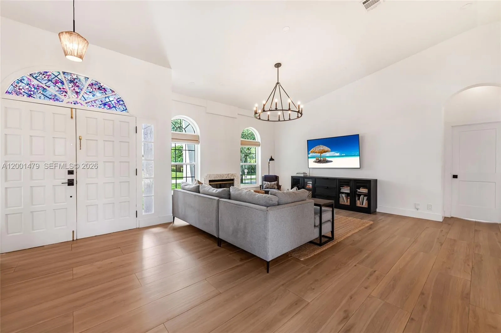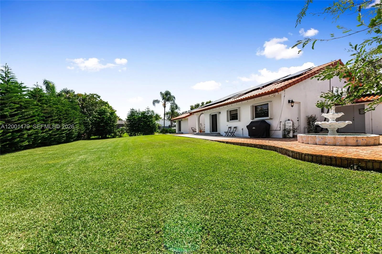 Step into your own private retreat in the heart of Plantation Acres. This beautifully updated home sits on a private 1/2-acre lot framed by lush evergreen hedges, offering a perfect blend of comfort and style. The designer kitchen features timeless white cabinetry, marble-style countertops, gas stove, large island, farmhouse sink, and stylish lighting. Soaring ceilings and a fully renovated interior with wide-plank flooring and smooth, modern walls create a bright, airy feel throughout. The home opens to a charming courtyard and expansive backyard with mango, tamarind, and guanabana trees. The expanded primary suite offers added space and a renovated bath. The spacious second bedroom feels like a true second primary suite, complete with its own en suite bathroom. Enjoy energy efficiency with $30 monthly electric bills via a $70K solar system + partial impact windows. Prime location with great neighbours, near Sawgrass Mills, dining, Panthers arena, and American Heritage. Fireplace. 2-car garage.