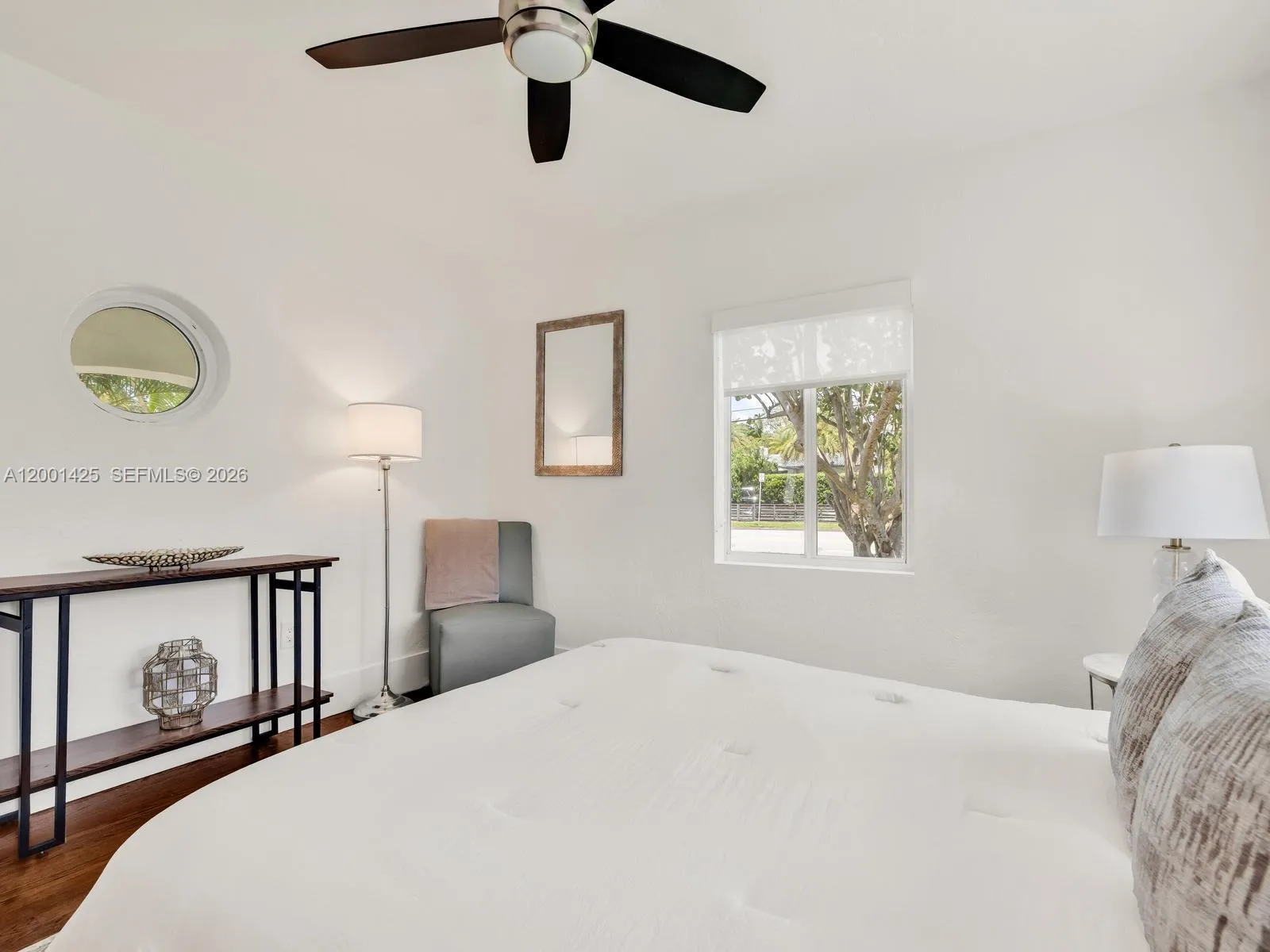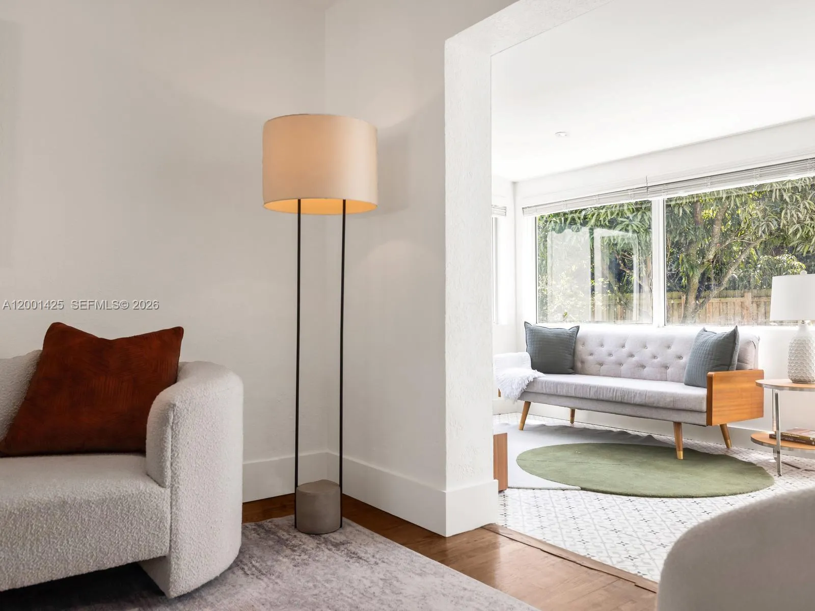 A rare opportunity to own in Miami Shores under $800K—without sacrificing condition or charm. Welcome to The Seagrape Charmer! This turnkey 3BD/2BA home offers 1,433 SF on a 7,725 SF lot, featuring a new roof (2025), all impact windows/doors, and a new septic system. Warm wood floors run throughout, leading to a bright living room with a picture window overlooking the front garden. The open kitchen is updated with quartz counters and stainless appliances, flowing seamlessly into dining. Two spacious guest rooms sit on one side, while the primary suite is tucked privately in the rear with a walk-in closet and en-suite bath. A sunny Florida room with charming encaustic tile floors and wraparound windows adds flexible living space. Outside, enjoy a peaceful, fully-fenced backyard with mango tree, patio, and room for a pool. One-car garage + laundry room. Non-flood zone. Positioned near Downtown Miami Shores with conveniently quick access to I-95 via 103rd Street. A tremendous value in the Village Beautiful!
