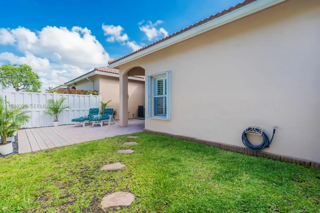 Located in the gated Waterways at Pembroke Falls, this move-in ready 3-bedroom, 2-bath home offers exceptional value and an incredible opportunity to own in one of West Pembroke Pines’ most desirable communities. Designed with an open floor plan, high ceilings, and abundant natural light, the home feels bright, spacious, and inviting from the moment you enter. The well-maintained interior features Plantation shutters throughout, a kitchen with granite countertops, stainless steel appliances, and a stylish snack bar with light taupe wood cabinetry, perfect for everyday living and entertaining. A split floor plan provides privacy, with a spacious primary suite offering a walk-in closet, dual sinks, and a soaking tub, while the updated guest bathroom adds modern appeal. Step outside to a private, fully fenced backyard (PVC FENCE) with a covered patio, creating the ideal outdoor living space. Additional highlights include a 2019 AC, accordion hurricane shutters, a one-car garage, and ample guest parking. Residents enjoy a gated community with low HOA, exterior painting included, a clubhouse, and a pool overlooking the lake. Ideally located near C.B. Smith Park, Pembroke Lakes Mall, shopping, dining, and I-75. Zoned for A-rated schools and surrounded by everything Pembroke Pines has to offer