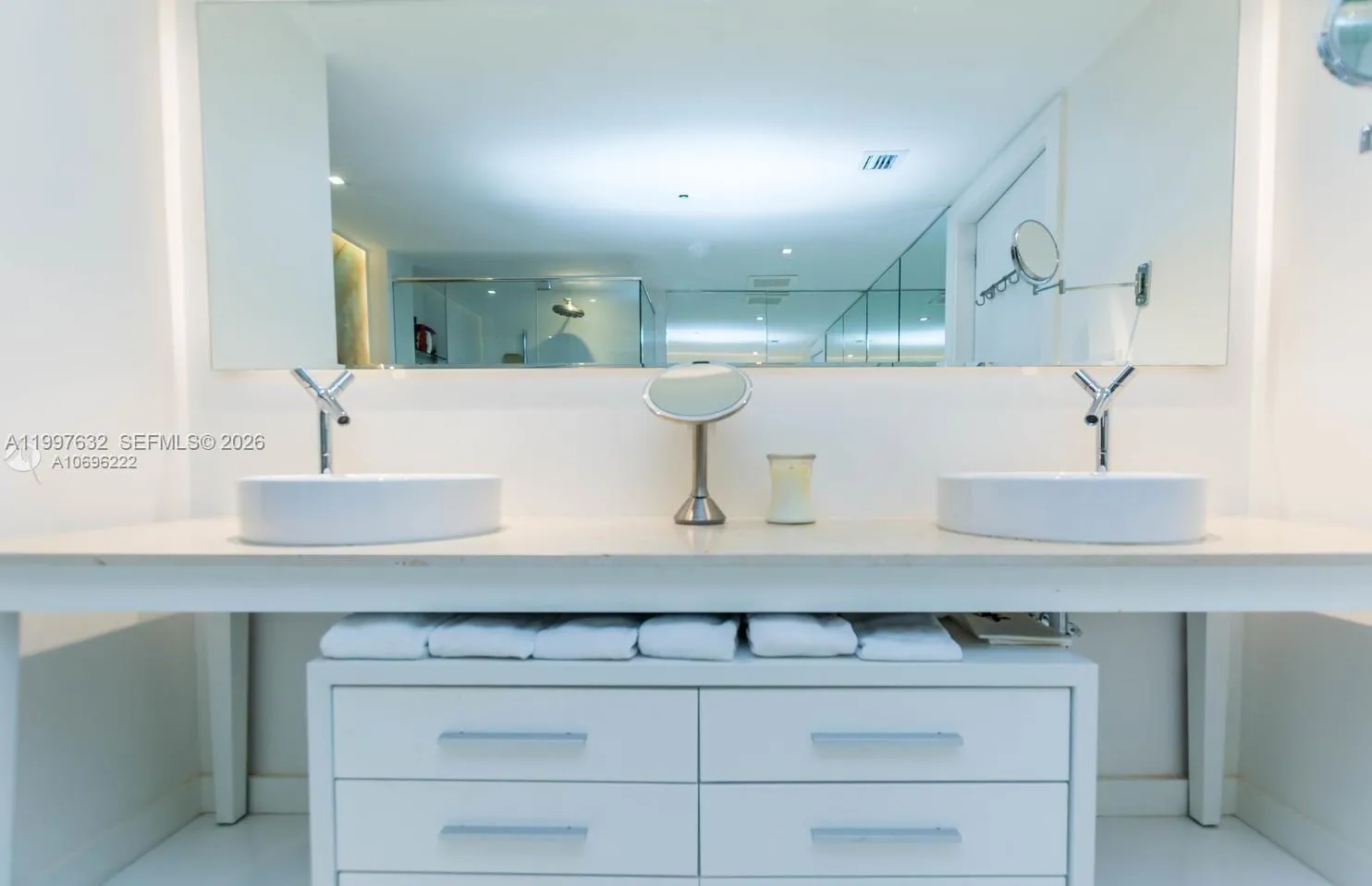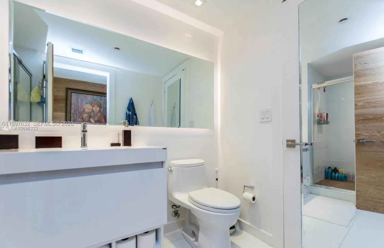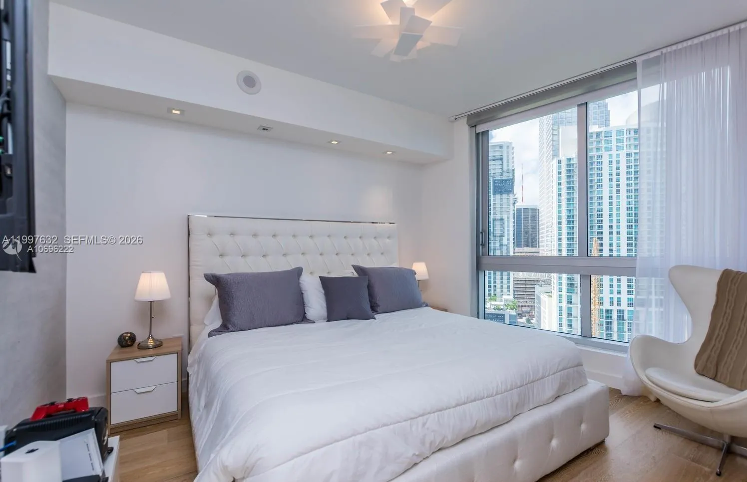 Beautiful bay front 3 bedroom, 2.5 bath condo in Icon Brickell. This one of a kind unit offers white porcelain floors throughout, wood & glass paneled walls, updated bathrooms, drop ceilings w/ spot lighting, walk-in closets, blackout roller shades in bedrooms, and much more. Chandeliers not included.