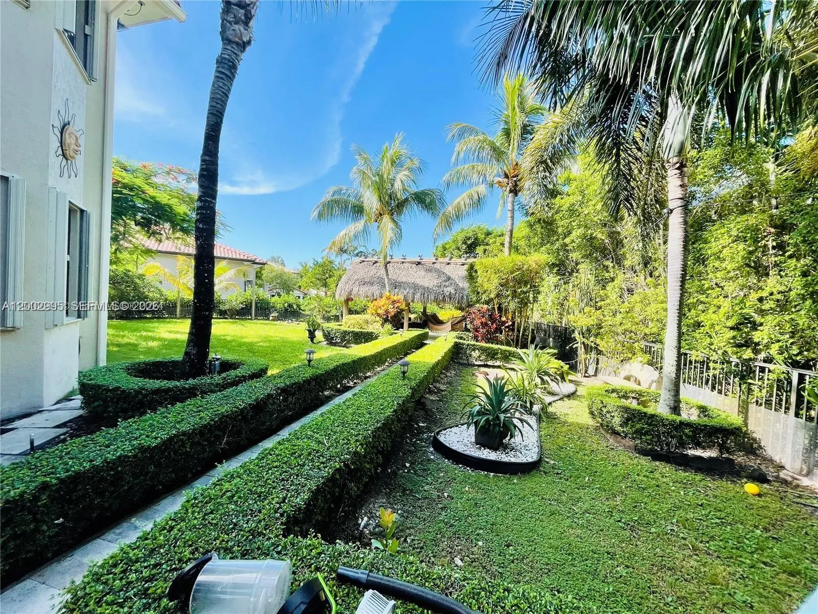 Experience luxury living in this beautifully appointed 5-bedroom, 4-bath residence featuring a spacious 3-car garage and an exceptional layout designed for comfort and elegance. The home boasts stainless steel appliances, double ovens, and abundant cabinetry—perfect for both everyday living and entertaining. The expansive primary suite offers two oversized walk-in closets and a spa-like bathroom complete with dual vanities, a jacuzzi tub, and elegant marble flooring. Step outside to your private oasis: a serene backyard deck surrounded by lush landscaping, a peaceful garden, and a private patio. The charming tiki hut creates the perfect setting for relaxing or entertaining in a tranquil environment. Located in the prestigious Cutler Cay community, this home includes: 24/7 guard-gated security with patrol, cable-TV, internet, and alarm monitoring, and access to a luxurious clubhouse with gym, Heated pool, playground, Tennis, basketball, and pickleball courts. Enjoy true resort-style living every day.