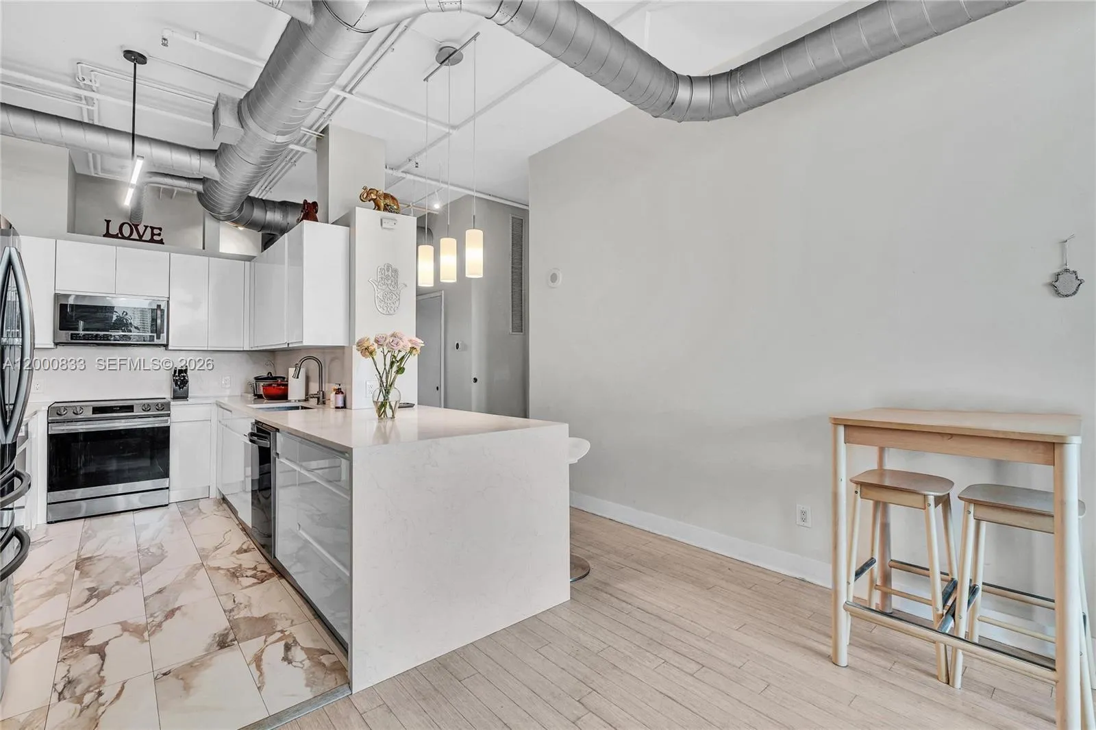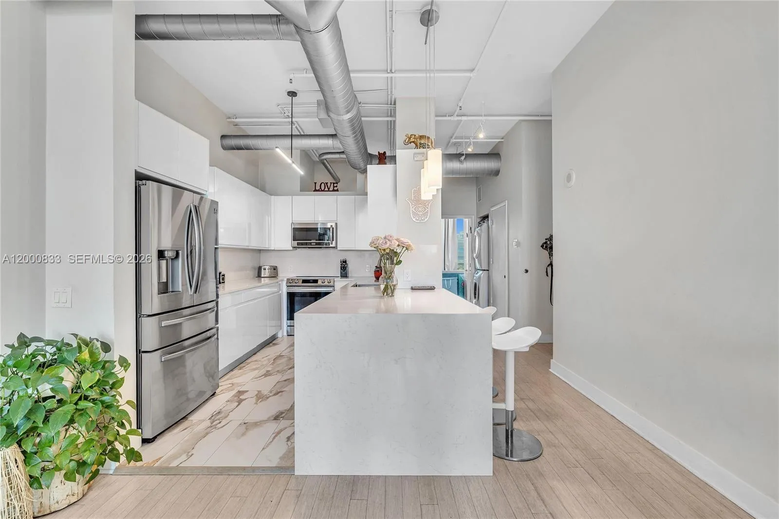 Beautiful 3-bedroom, 2-bath residence at Uptown Marina Lofts . This spacious unit features a modern renovated kitchen with waterfall countertops and stainless steel appliances, perfect for both everyday living and entertaining.rnEnjoy bamboo flooring throughout and a stylishly updated primary bathroom featuring a floating vanity, floor-to-ceiling tile, and a sleek glass shower. The highlight of the home is the stunning marina view, offering a peaceful waterfront backdrop from the living space.rnThe building offers resort-style amenities including a fitness center, tennis and basketball courts, sauna, steam room, yoga and massage rooms, pool, and jacuzzi. Ideally located just steps from parks, top-rated schools, golf courses, shopping, and dining, this residence combines modern design, resort-style comfort, and beautiful water views in the heart of Aventura