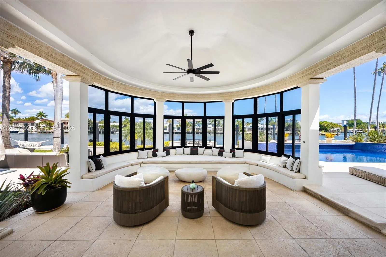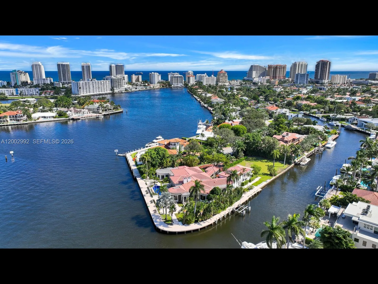 Welcome to 2300 Aqua Vista Boulevard, a reimagined Mediterranean estate in Fort Lauderdale’s exclusive Las Olas Seven Isles. Nestled on a 1.14-acre point lot with 550 feet of deep waterfront along the Barcelona Canal, this 7-bedroom, 7.5-bathroom home spans 8,132 square feet of luxurious living—perfect for mega-yacht owners seeking direct ocean access.rnrnThis masterpiece boasts a brand-new metal roof with a 100-year warranty, hurricane-rated bulletproof glass windows, and soaring ceilings. The chef’s kitchen and prep kitchen shine with custom cabinetry, crystallo countertops, a new pantry, and premium appliances, while a chic bar and lounge offer the ultimate entertaining space with stunning water views. The first-floor primary suite features coffered ceilings, pool access, a spa-like en suite, and a walk-in closet. Bathrooms are being renovated to reflect the home’s elevated style.rnrnOutside, enjoy a resurfaced multi-sport court, a refinished pool with new equipment, a modernized dock with 550 feet of dockage, and lush landscaping with enchanting lighting. Additional upgrades include a new Allini water purification system, enhanced natural gas lines, a renovated garage, and state-of-the-art security.rnrnFuture plans include new entry gates, landscaping enhancements, ongoing bathroom renovations, new driveway pavers, a backup generator, over-poured dock concrete, and matching wood flooring upstairs.