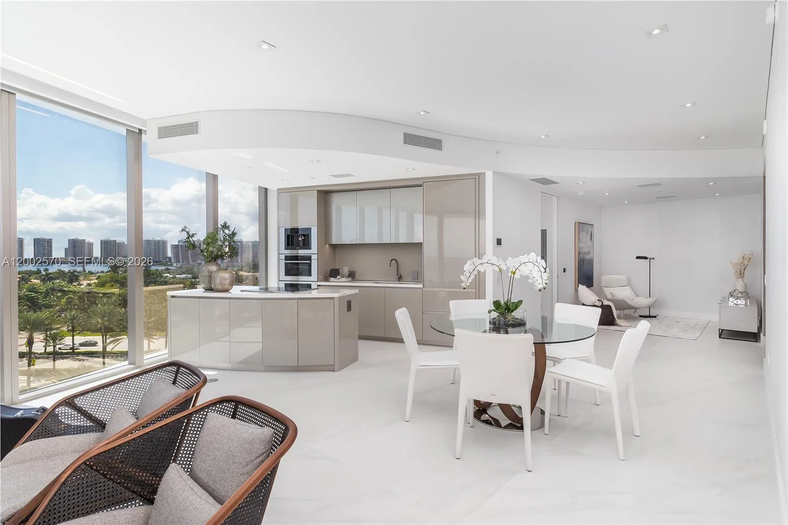 Presenting the only Armani Casa Residences in the US, designed by the late Cesar Pelli to resemble a sail rising from the ocean, this oceanfront ultra luxury condo has an extraordinary 35,000 SF of amenities and represents the Armani lifestyle with its distinctive luxury and unrivaled elegance. 2 bedroom plus den with 2.5 Armani Casa designed baths. Armani/Dada Kitchen with European marble counters, Wolf & Sub-Zero appliances. 491 SF of terrace with a summer kitchen, this corner residence offers breathtaking ocean & city views. Offered furnished with 48×48 Calacatta Porcelain tile, elegant Italian closets, and floor to ceiling windows throughout. Elevated, lushly landscaped oceanfront terrace with heated swimming pool, hot tub, and poolside food and beverage service. The building has a restaurant, media room, private spa and interior bar-coffee lounge. Parking is valet only.