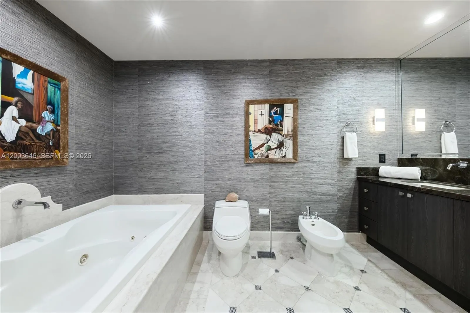 Renovated, highly desirable large 1BR/1.5BA with private balcony at Continuum on South Beach. With its own private foyer and brand new furniture throughout, this residence makes an excellent first impression and statement to welcome your guests. Excellent layout for entertaining, and kitchen is equipped with Miele and Subzero appliances. Incredible views from large primary bedroom overlook lush treetop greenery layered with ocean/bay views of Fisher Island, Miami city skyline and cruise ship waterways. Enjoy epic Miami sunsets from your balcony accessible from the living room and bedroom. Continuum amenities feature a resident restaurant, full beach service, fitness center & spa, 3 clay tennis courts and 3 pools. Off-season rental available now through December 31st.