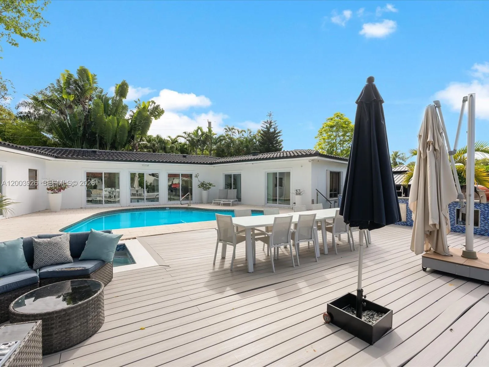 Discover a rare opportunity to own a prime waterfront property in the prestigious city of Coral Gables. This exceptional 4-bedroom, 4-bathroom home sits on a sought-after seawater canal, offering direct water access—an increasingly hard-to-find feature in the area.rnBoating enthusiasts will appreciate the private dock and dedicated jet ski platform, perfect for enjoying South Florida’s waterfront lifestyle right from your backyard.rnThe property was thoughtfully renovated in 2024, featuring a new modern kitchen and four fully renovated bathrooms equipped with smart technology, along with tasteful aesthetic enhancements throughout the home. Most of the windows are impact, providing added storm protection and energy efficiency. A newer septic tank adds additional peace of mind.rnStep outside to a spacious backyard oasis with lush landscaping and mature trees, including a fruitful mango tree, deck, pool and spa creating a serene and private outdoor retreat ideal for relaxing or entertaining. Nice pool and Jacuzzi.rnThis is a unique chance to own a move-in-ready waterfront home in one of South Florida’s most desirable communities.