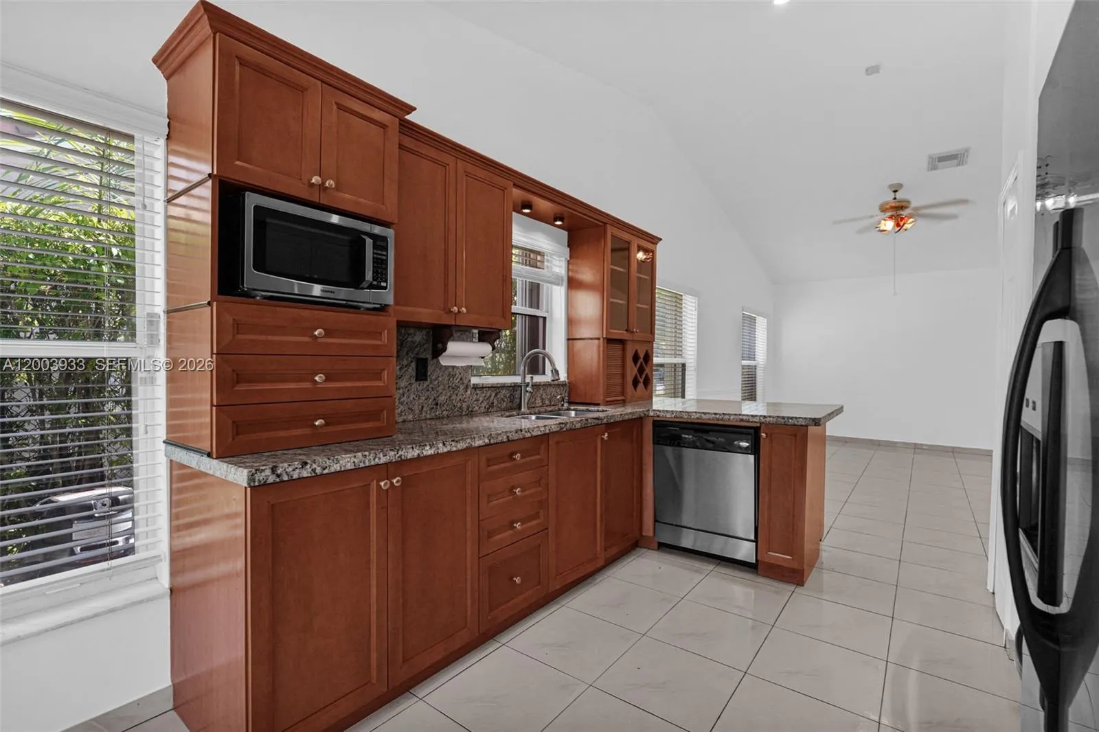 This charming single-story residence offers three bedrooms, two bathrooms, and a two-car garage, all set within the secure, gated community of Pembroke Shores. The home is filled with natural light and features an open layout with soaring vaulted ceilings spanning the kitchen, living room, family room, and formal dining area. The kitchen is well-appointed with granite countertops, wood cabinetry, and a cozy breakfast nook. The primary suite includes a spacious walk-in closet, a separate vanity area, a walk-in shower, and a relaxing Roman-style soaking tub. Durable tile flooring run throughout the home. Outside, a generously sized fenced backyard with a free form pool creates an ideal setting for gatherings and outdoor enjoyment. Pool services are included, along with a full-size washer and dryer, and hurricane shutter panels for added protection. Conveniently located near major highways, shopping, dining, and entertainment, this professionally managed property requires HOA approval. Applicants aged 18 and older must complete an online application with a fee per adult, along with providing proof of income, identification, and residence history. Renters insurance, including pet liability coverage if applicable, is required prior to move-in.