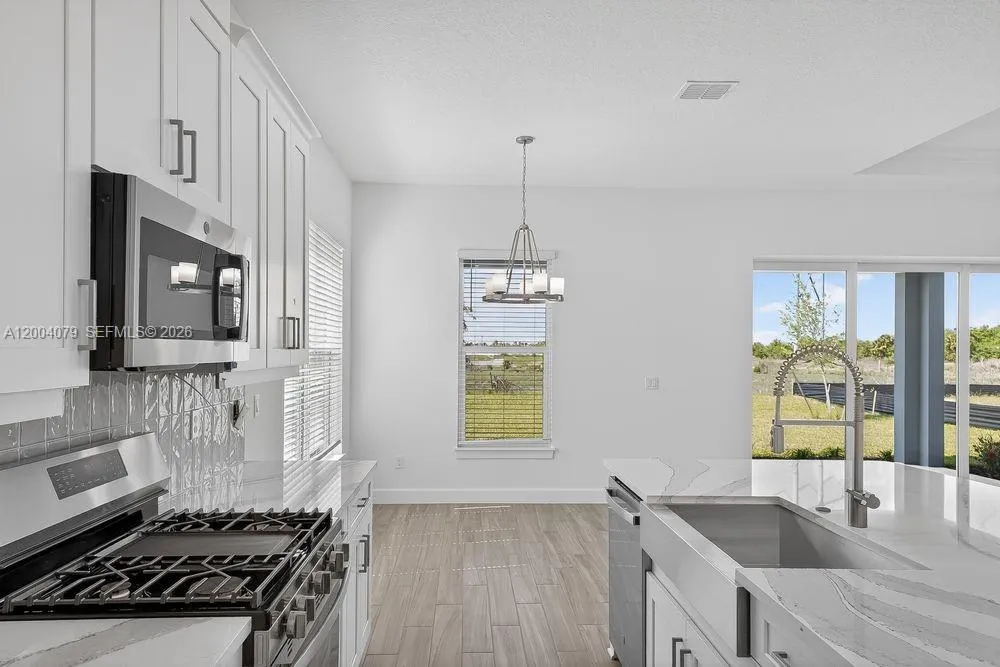 What’s Special: Preserve View | Dedicated Study | Covered Patio. New Construction – Ready Now! Built by America’s Most Trusted Home Builder. Welcome to the Farnese at 13605 SW Alejandro Court in Esplanade at Tradition! This open-concept floor plan is designed for flexibility and comfort with a designer kitchen featuring a large island that flows into the great room and casual dining area. Sliding glass doors lead to a covered lanai, perfect for relaxing outdoors. The primary suite offers a bay window, dual sinks, a walk-in shower, and an oversized closet. A guest bedroom with a private bath, an additional bedroom with its own ensuite, and a study provide plenty of space for guests and hobbies. Additional Highlights Include: tray ceilings, additional bedroom with bathroom, pocket sliding glass door to outdoor living, study, rough-in plumbing for future outdoor kitchen. MLS#A12004079 – Discover Esplanade at Tradition, a vibrant 55+ community with resort-style amenities, pool, tropical beach, and cabanas. Play pickleball, stroll the lakefront, enjoy café treats, and visit the bark park. Live every day like vacation!
