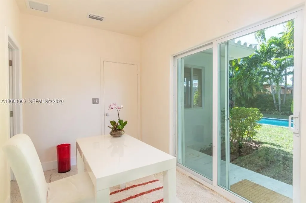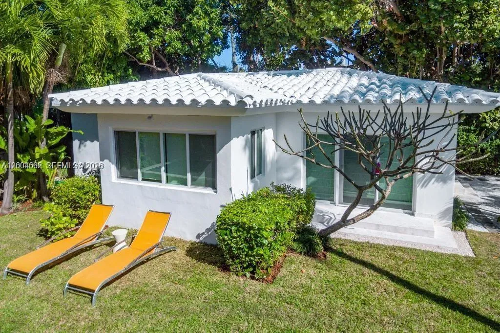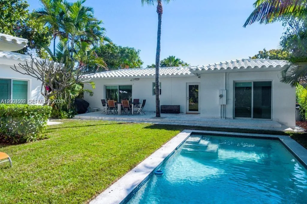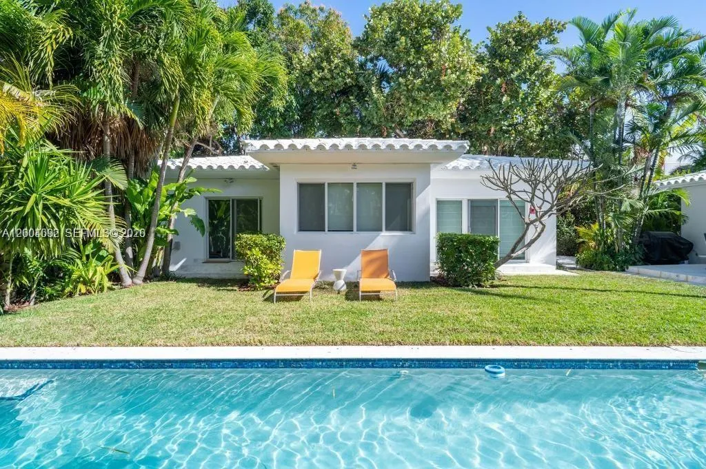 Spacious 1940 residence with pool features 4BR/3BA main house plus 1000 sq ft guesthouse: 1BR/1BA + den, on an oversized 10,000 sq ft lot. 31′ living room with vaulted ceilings and fireplace, separate Florida room and Library. Open modern chef’s kitchen with 42″ Sub-Zero fridge and Wolf stove. Master suite overlooking pool and patio, features huge walk-in closet, spa bathroom with Hans-Grohe fixtures. Oversized guest house with large living room, renovated eat-in-kitchen, bedroom, bathroom, and 2 closets … perfect for in-laws, grandparents, extended family, guests, office, gym, home business. PGT Impact windows, new roof, 3-Zone A/C, 2 storage areas, 10′ x 38′ lap pool, outdoor shower. Normandy Isle location on private cul-de-sac, yet steps to Normandy Fountain, restaurants, shops, and farmers’ market. Owner prefers long lease.